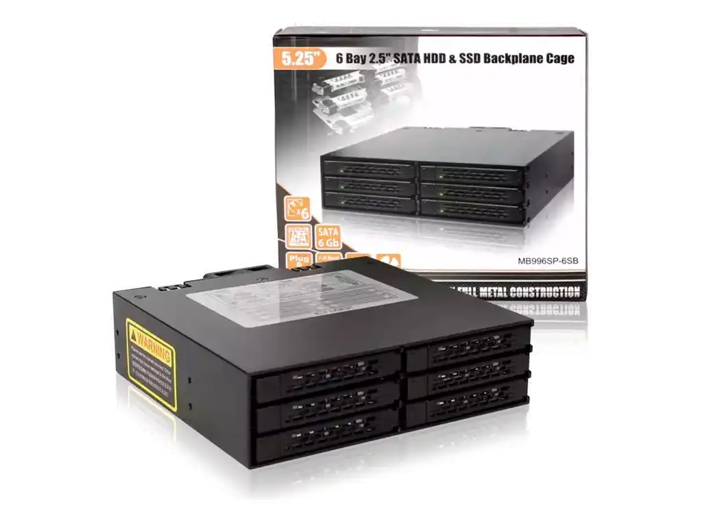 Der 5,25" Laufwerksschacht ist seit langer Zeit ein Standard bei Computergehäusen - angefangen bei Industriecomputern aus den frühen 90er Jahren bis hin zu modernen Micro ATX Gehäusen. Der 5,25" Schacht wurde oft für optische Laufwerke verwendet oder auch für eine einzelne 3,5" Festplatte in einem Wechselrahmen. Allerdings ist es nahezu unmöglich gewesen mit einem einzelnen 5,25" Schacht ein komplexes RAID-System zu betreiben - bis jetzt. Die MB996SP-6SB Vollmetall-Backplane für 6x 2,5" SATA HDDs & SSDs eröffnet neue Möglichkeiten.
