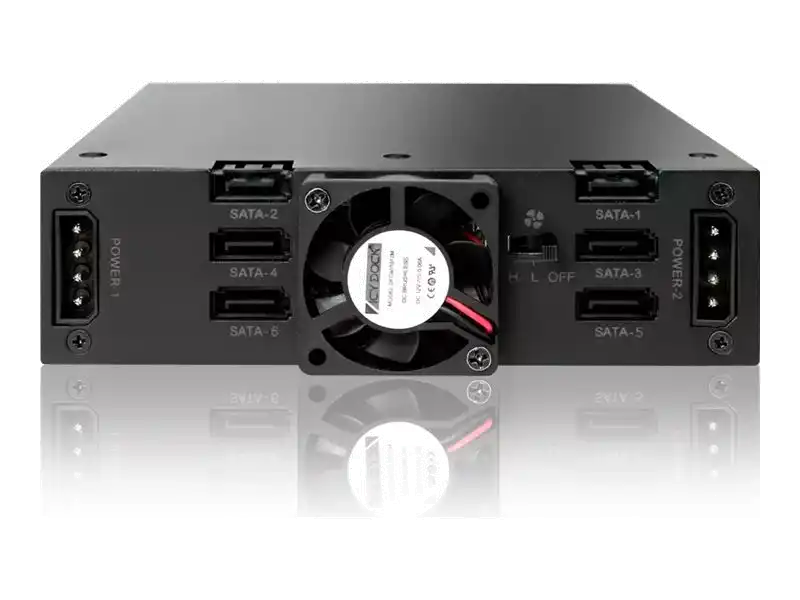 Unterstützt 6 x 7mm bis 9,5mm 2,5" SATA Festplatten oder SSDs in einem einzelnen 5,25" Laufwerksschacht für höchste Anforderungen in RAID-Anwendungen