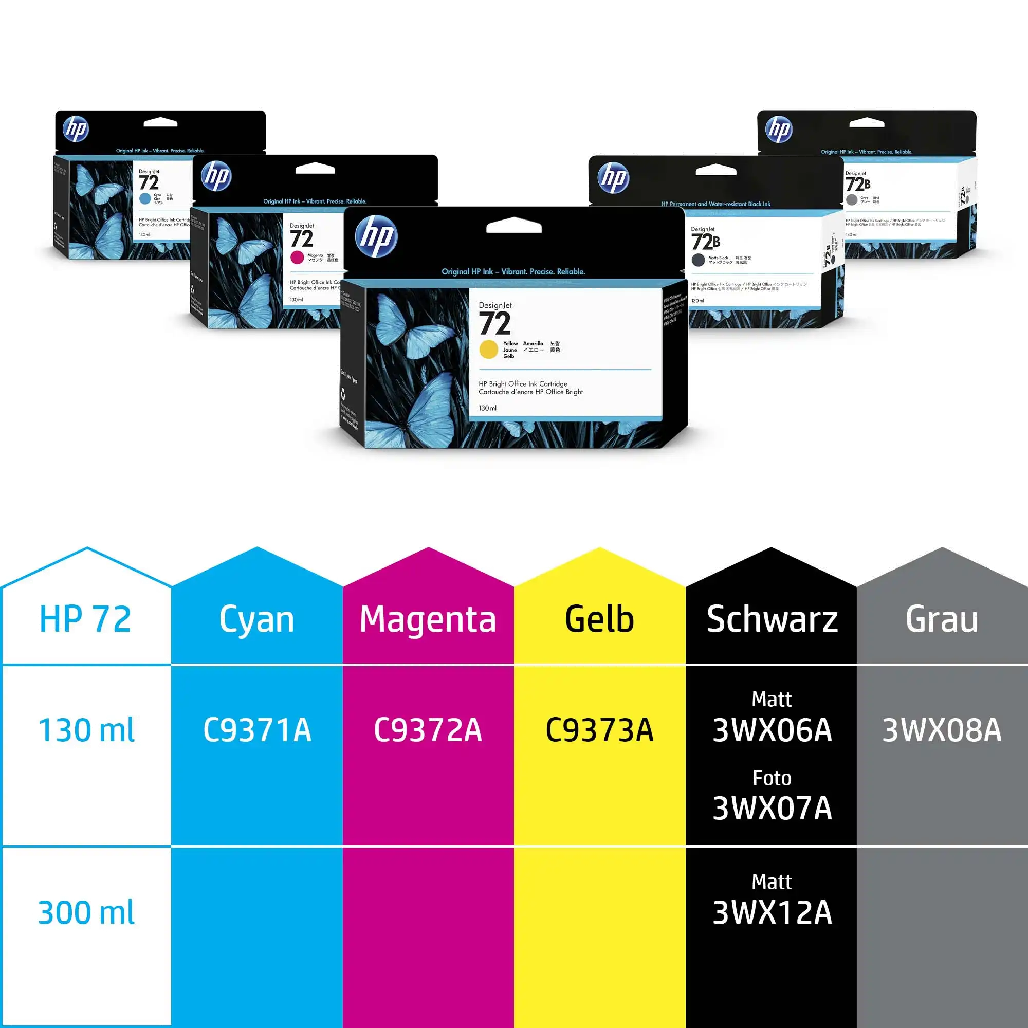 Original HP Tinten sorgen für gestochen scharfe Texte, hohe Strichgenauigkeit, wirklich neutrale Grautöne und kräftige Farben.