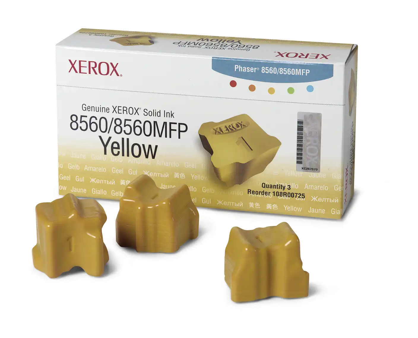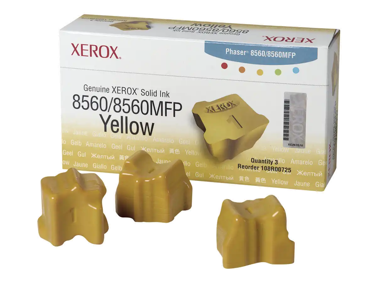 Xerox Phaser 8560/ 8560MFP Tintensticks Gelb (3400 Seiten)- 108R00725 wurde eigens für unsere Produkte konzipiert und getestet. Sie gewährleisten optimale Druckqualität und höchste Zuverlässigkeit beim Druckvorgang. Darauf können Sie sich verlassen Seite für Seite. Original-Verbrauchsmaterialien von Xerox und Systeme von Xerox sind füreinander gemacht. Akzeptieren Sie keine Imitationen. Kompatible Toner können einen Ausfall von Xerox-Druckern verursachen und zu schlechter Druckqualität und schwachen Farben führen. Dank mehr als 75 Jahren Erfahrung sind Original-Tonermodule von Xerox etwas, auf das Sie sich verlassen können.