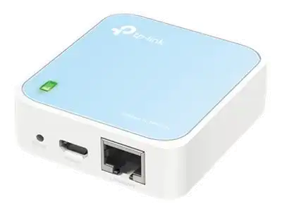 TL-WR802N N300 Nano Pocket Wi-Fi RouterSPEED: 300 Mbps at 2.4 GHzSPEC: 2× Internal Antennas, 1× Fast Ethernet WAN/LAN Port, 1× Micro USB 2.0 PortFEATURE: Router/Access Point/ Range Extender/Client/Hotspot Modes, IPv6 Supported