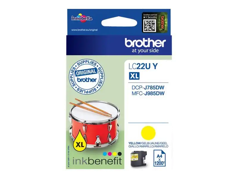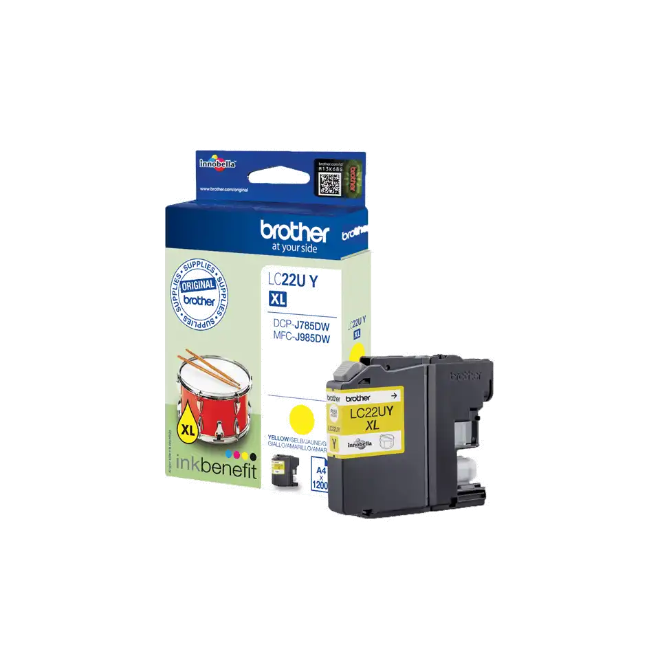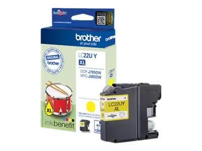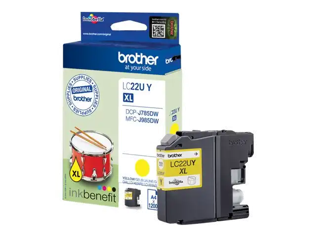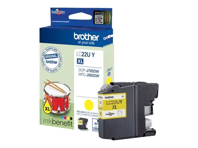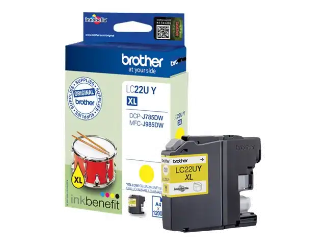 ProduktbeschreibungBrother LC22UY - XL - Gelb - original - TintenpatroneProdukttypTintenpatroneDrucktechnologieTintenstrahlDruckfarbeGelbPatronenleistungXLErgiebigkeitBis zu 1200 SeitenKompatibel mitBrother DCP-J785DW, DCP-J785DWXL, MFC-J985DW; INKvestment Work Smart MFC-J985DW, MFC-J985DW XLTechnische Daten