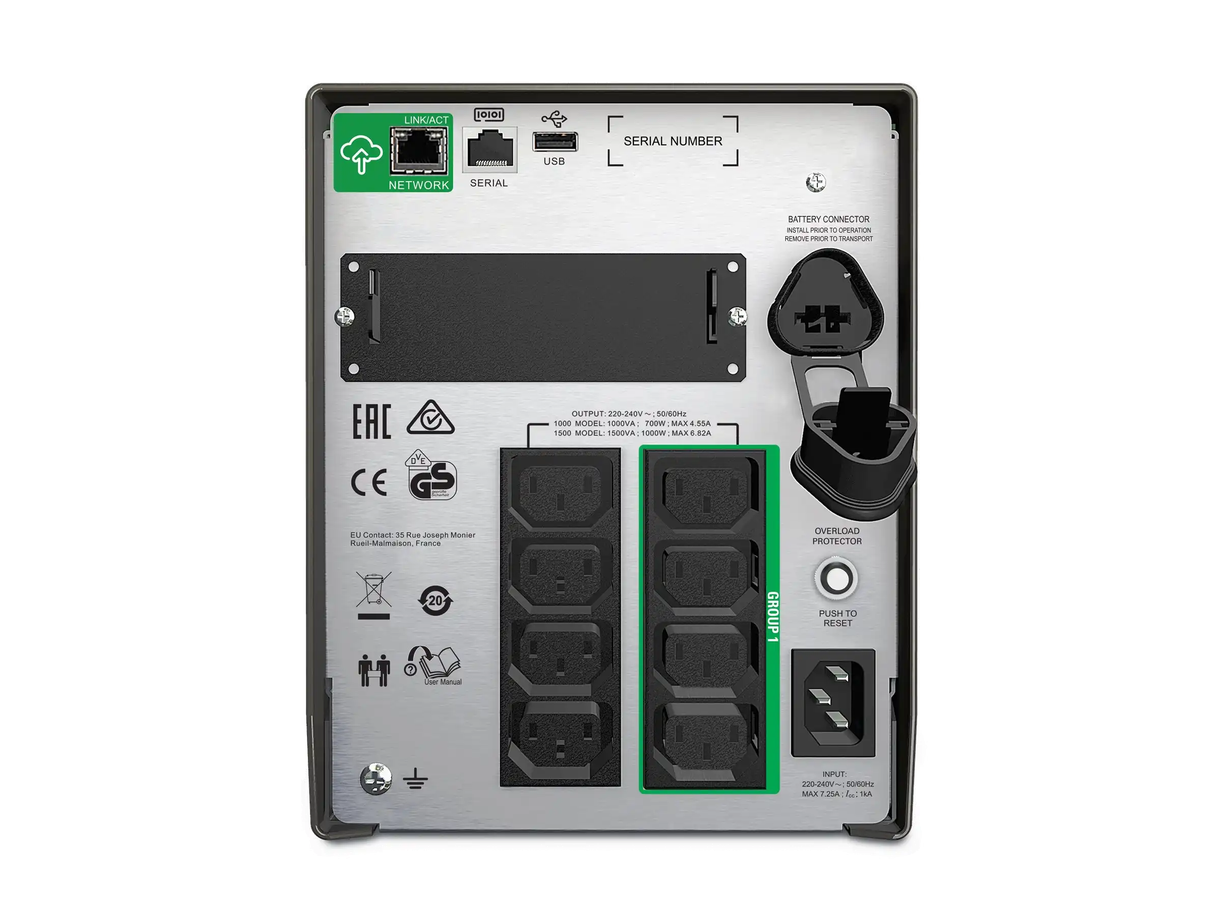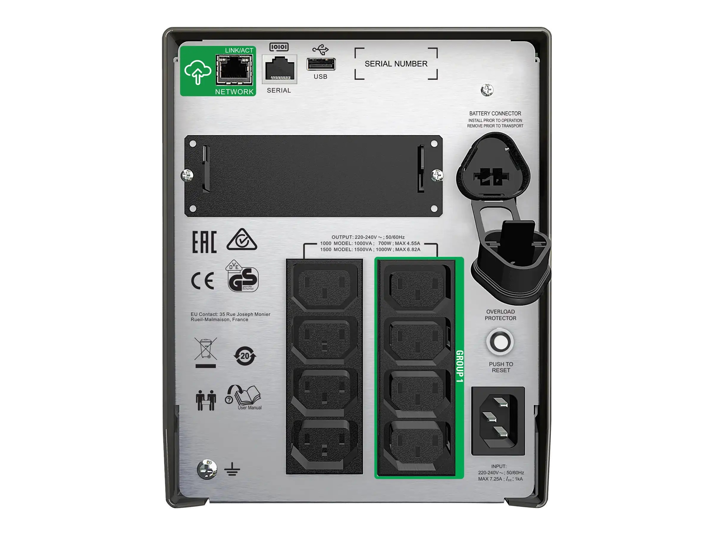 Smart-UPS SMT1500IC - USV - Wechselstrom 220/230/240 V - 1000 Watt - 1500 VA - RS-232, USB - Ausgangsanschlüsse: 8 - Schwarz - mit APC SmartConnect