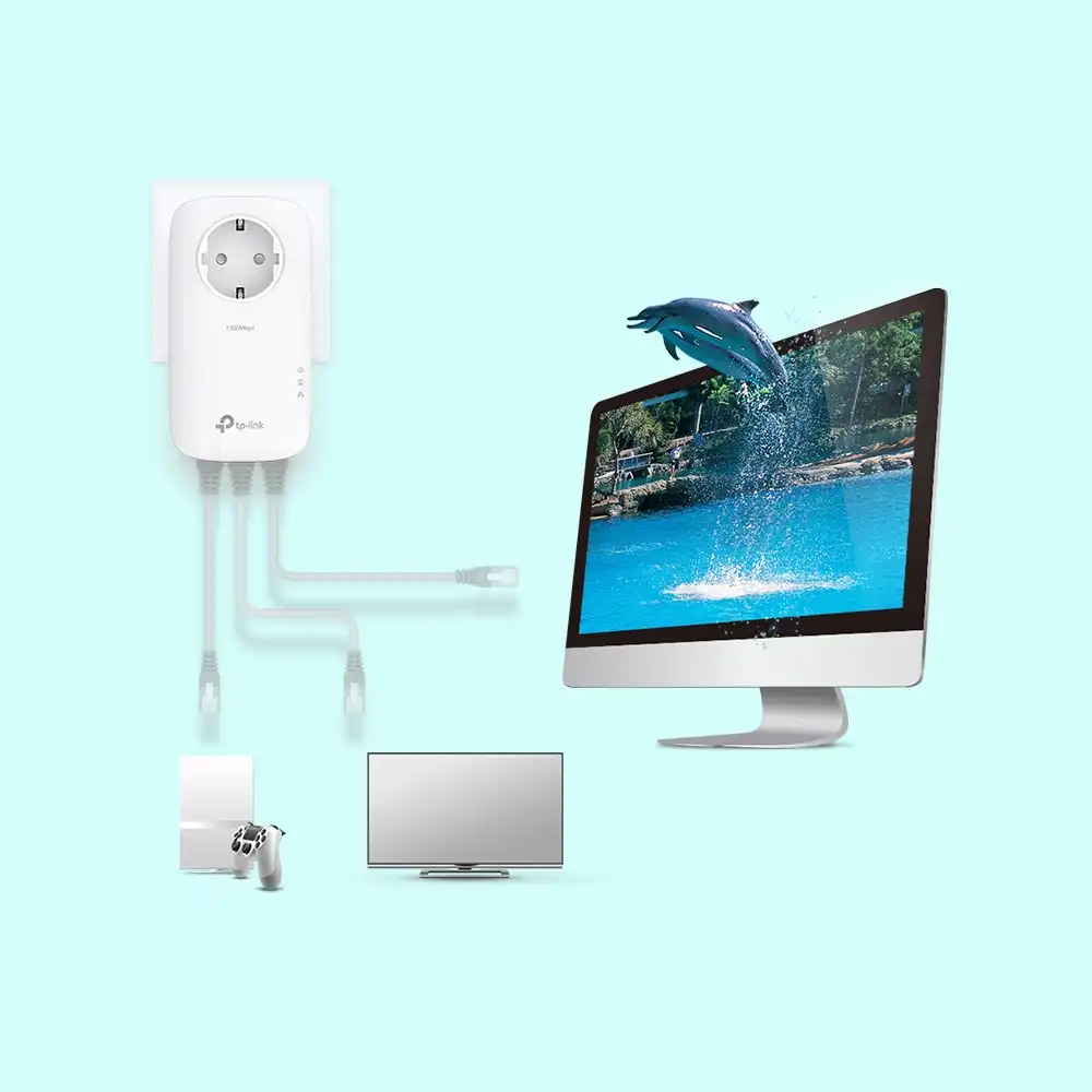 3 Gigabit-Ports für maximale Konnektivität Mit seinen 3 Gigabit-Ethernet-Ports kann das TL-PA8033P KIT bis zu 3 rein kabelgebundene Geräte gleichzeitig anschließen. Das macht das TL-PA8033P KIT zum perfekten Home Entertainment-Begleiter. Verbinden Sie 3 beliebige Geräte, von Smart-TVs und Spielekonsolen bis hin zu NAS-Boxen und Computern, gleichzeitig mit dem Internet. Schließen Sie einfach das Ethernet-Kabel an die Stromleitung an und los geht's!