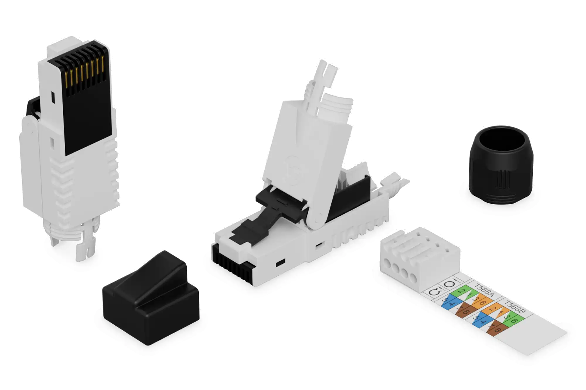 · Vormontierte Schutzkappe · In 120 Sekunden und ohne Spezialwerkzeug konfektionierbar · Sichere Übertragung auch bei Störungen von außen · Ideal für Reparatur und Erweiterung von Netzwerken · Leiterquerschnitte AWG 27/7-22/7, AWG 26/1-22/1 · Kabelaußendurchmesser: 6.0-9,5 mm · Abmessungen (B x H x T): 11,65 x 15,8 x 67,8 mm · --Thermische und klimatische Eigenschaften: · Betriebstemperatur: -40 °C to +60 °C · Feuchtigkeit: 85% RH · --Normen: · Gigabit Ethernet gemäß IEEE 802.3 · 10 Gigabit Ethernet gemäß IEEE 802.3an: Geeignet für 10 Gigabit Ethernet