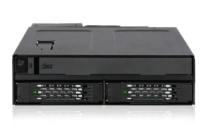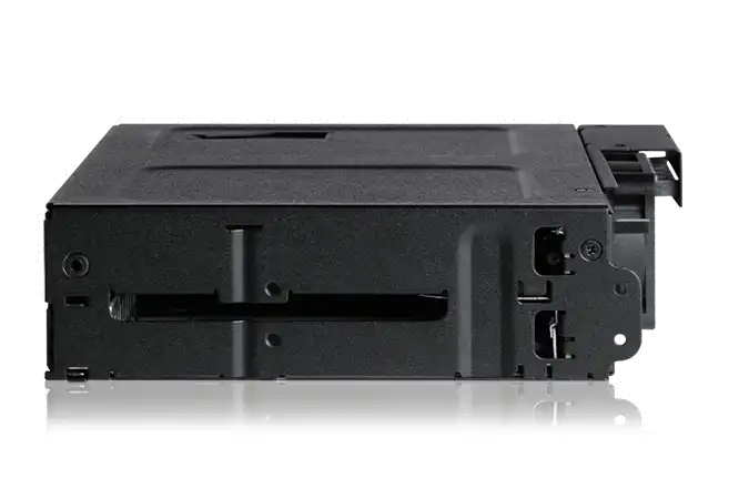 Maximale Raumnutzung Das hochkompakte Design des ToughArmor MB602SPO-B bietet Platz für zwei 2,5" SSD/HDD Hot Swap Slots mit voller Bauhöhe und ein optisches Slim/Ultra-Slim CD/DVD/Blu-ray ROM Laufwerk in nur einem einzelnen 5,25" Einbauschacht - perfekt für Anwendungen mit geringem Platzangebot wie portablen militärischen Workstations oder industriellen Rackmount-PCs.