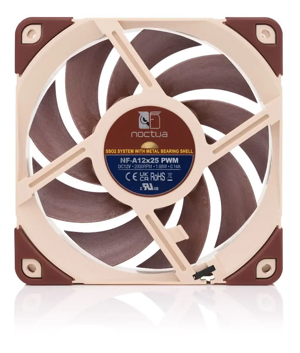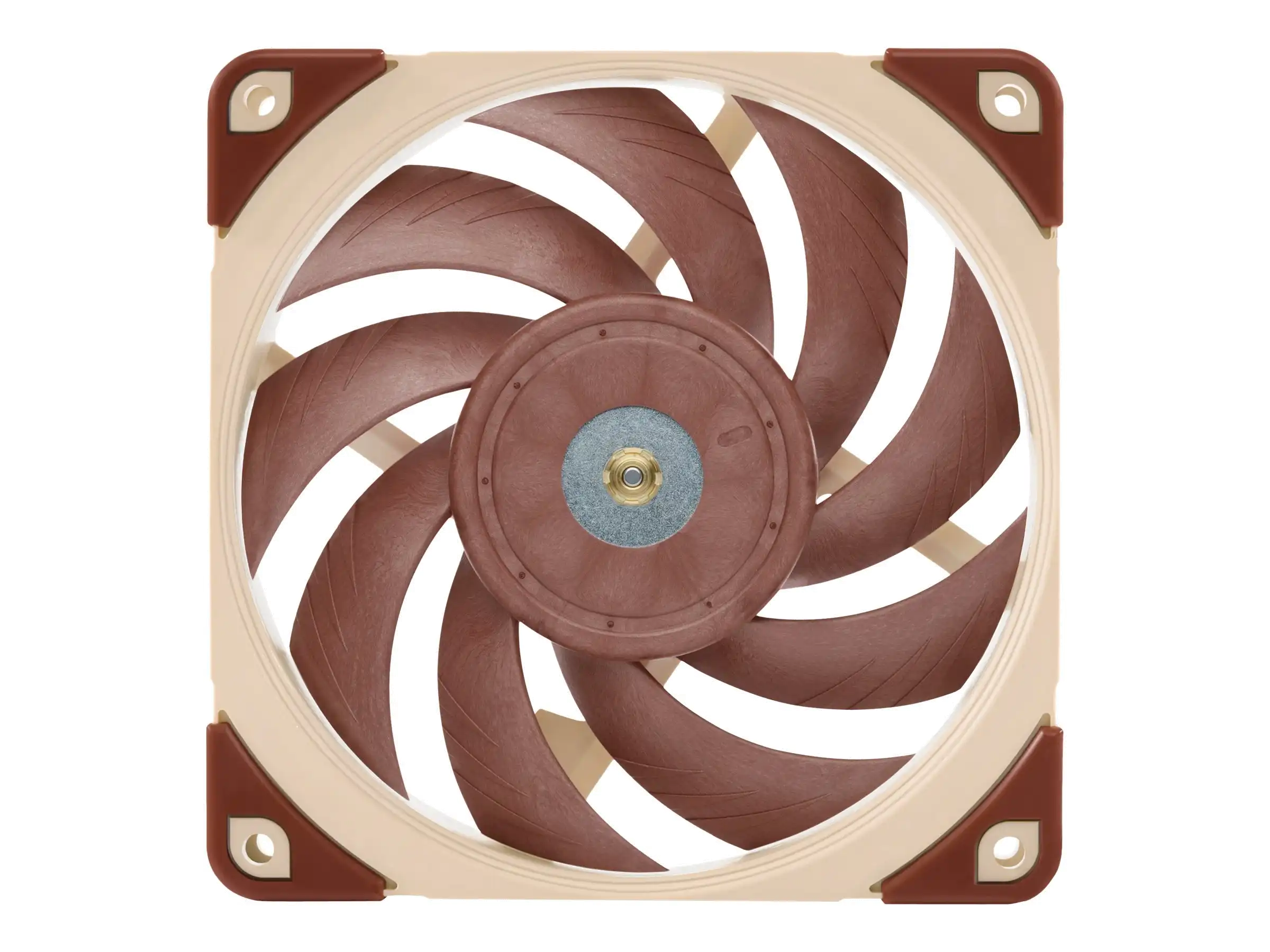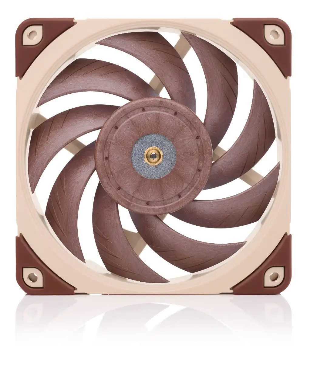 Metallverstärkter Nabenbereich Der zentrale Nabenbereich des NF-A12x25 wird komplett aus Stahl gefertigt und die Achsaufnahme verfügt über eine zusätzliche Verstärkung aus Messing. Durch die Kombination dieser beiden Maßnahmen sind im kritischen Nabenbereich ultimative Präzision und noch bessere Stabilität gewährleistet.