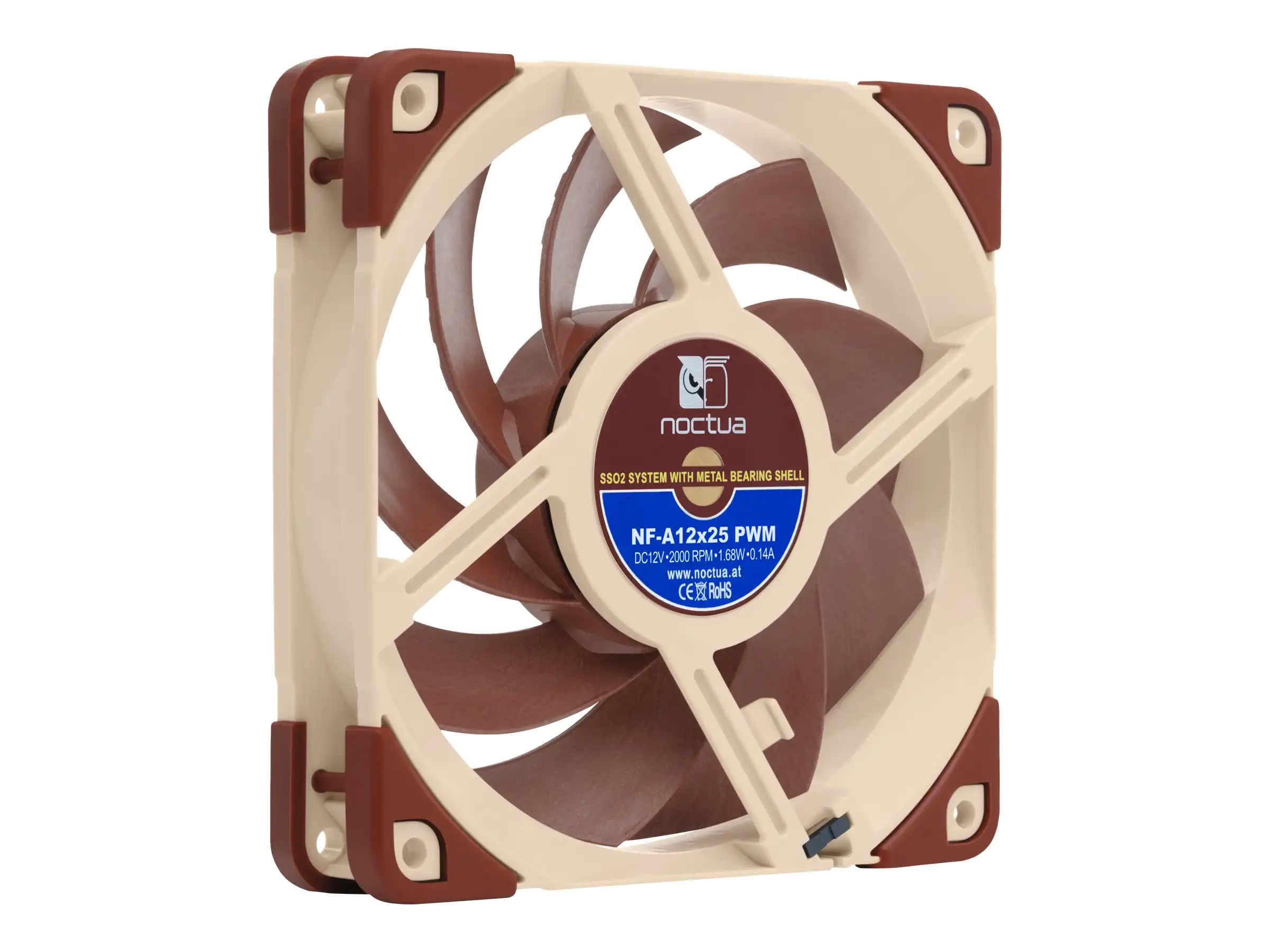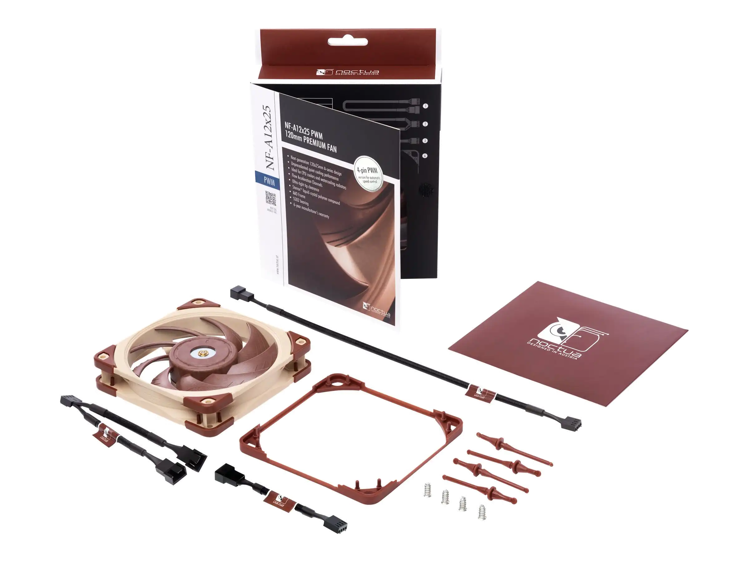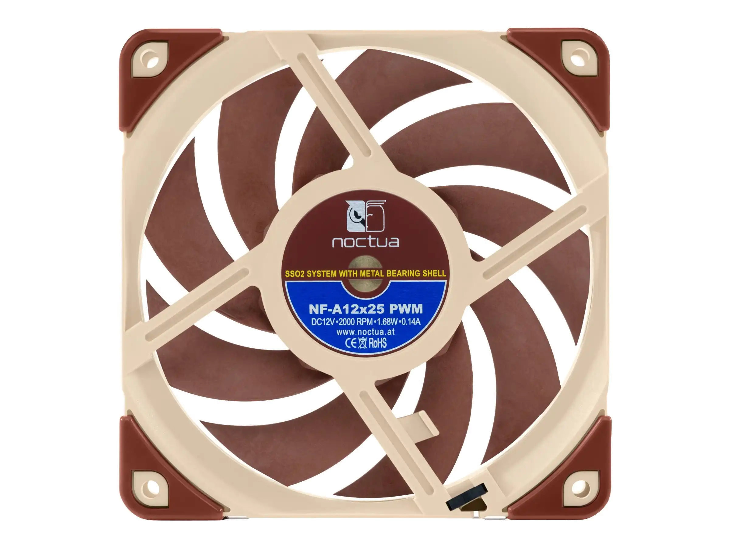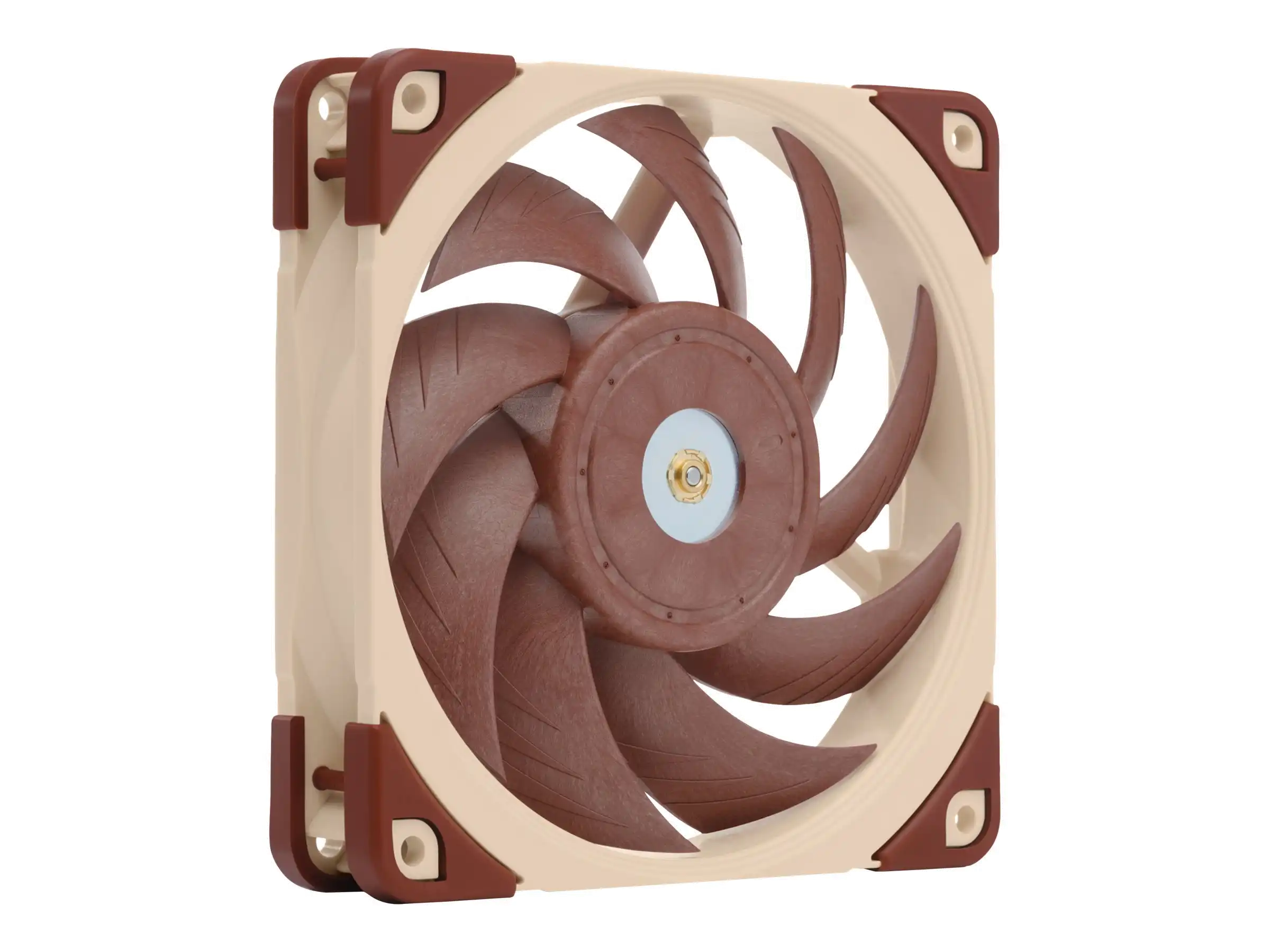 Metallverstärkter Nabenbereich Der zentrale Nabenbereich des NF-A12x25 wird komplett aus Stahl gefertigt und die Achsaufnahme verfügt über eine zusätzliche Verstärkung aus Messing. Durch die Kombination dieser beiden Maßnahmen sind im kritischen Nabenbereich ultimative Präzision und noch bessere Stabilität gewährleistet.