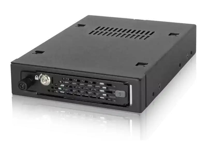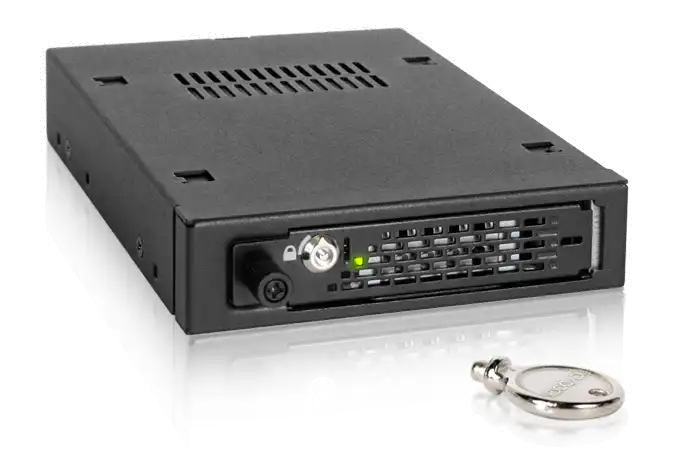 Der ICY DOCK ToughArmor EX MB491SKL-B 2.5" Wechselrahmen wurde speziell für kompakte, industrielle Systeme entwickelt die einen besonderen Schutz für Laufwerke erfordern. Er ist aus massivem Metall konstruiert das praktisch schon von Haus aus die Flammbarkeitsanforderungen erfüllt und in der Lage widrigsten Umweltbedingungen zu widerstehen. Das Metallschloss verhindert einen unautorisierten Zugriff auf Ihre wichtigen Laufwerke während die Thumbscrew zusätzlichen Schutz bei Erschütterungen bietet und Vibrationen des Trays reduziert. Dieses trägt zu einer erhöhten Stabilität während des Transports bei. Der ICY DOCK MB491SKL-B unterstützt sowohl SAS als auch SATA Festplatten / SSDs mit Übertragungsgeschwindigkeiten von bis zu 6GBit/s und ist abwärtskompatibel zu Laufwerken und Hosts mit 3GBit/s. Er ist die ideale Lösung für kompakte Enterprise-Level SFF Anwendungen und Systeme da der geringe Platz in IPCs, Überwachungssystemen, Embedded Systemen, Automatisierung, Systemen aus der Luftfahrt und mobilen DVRs optimal genutzt wird.