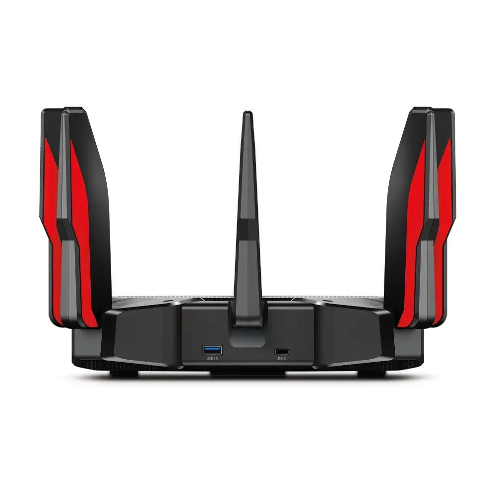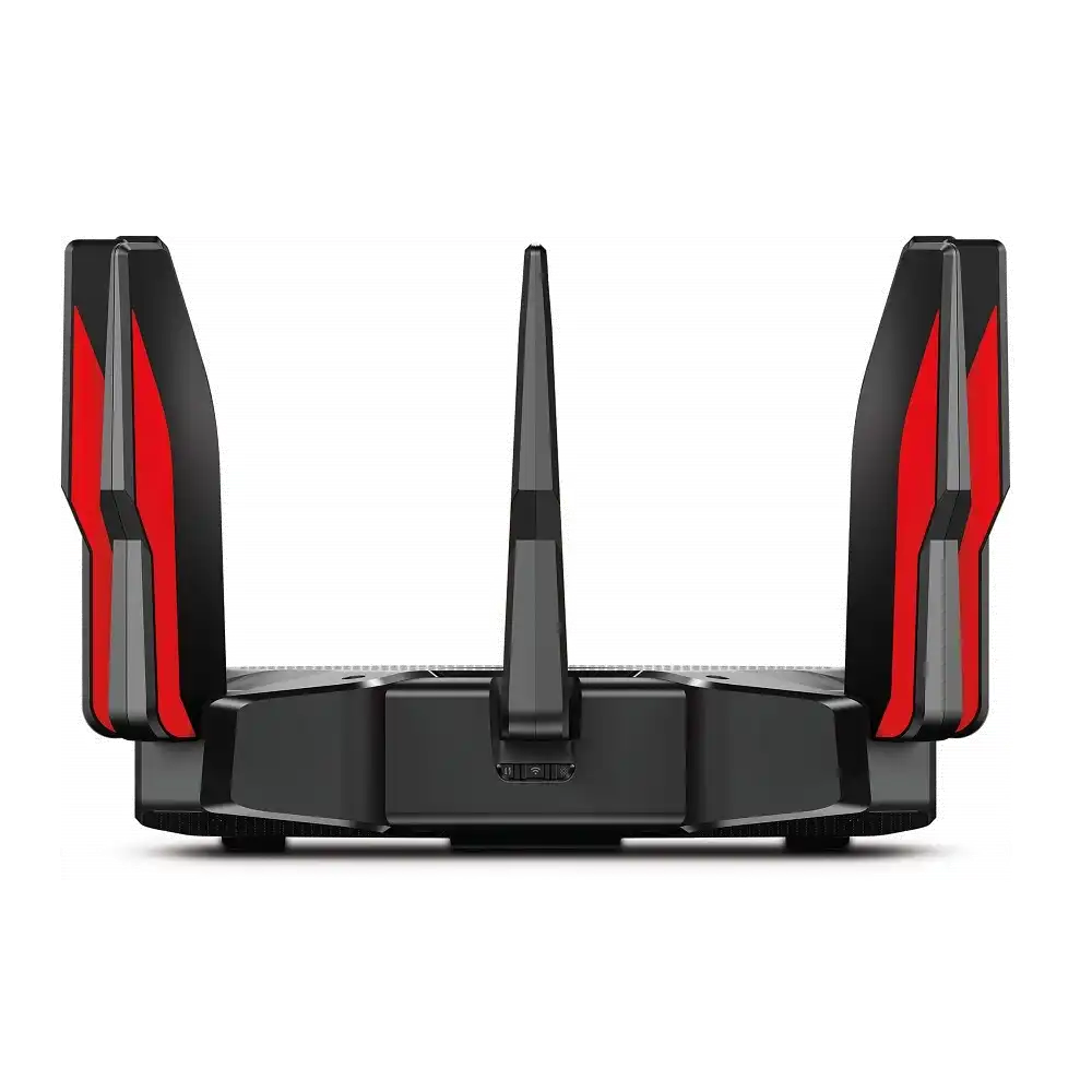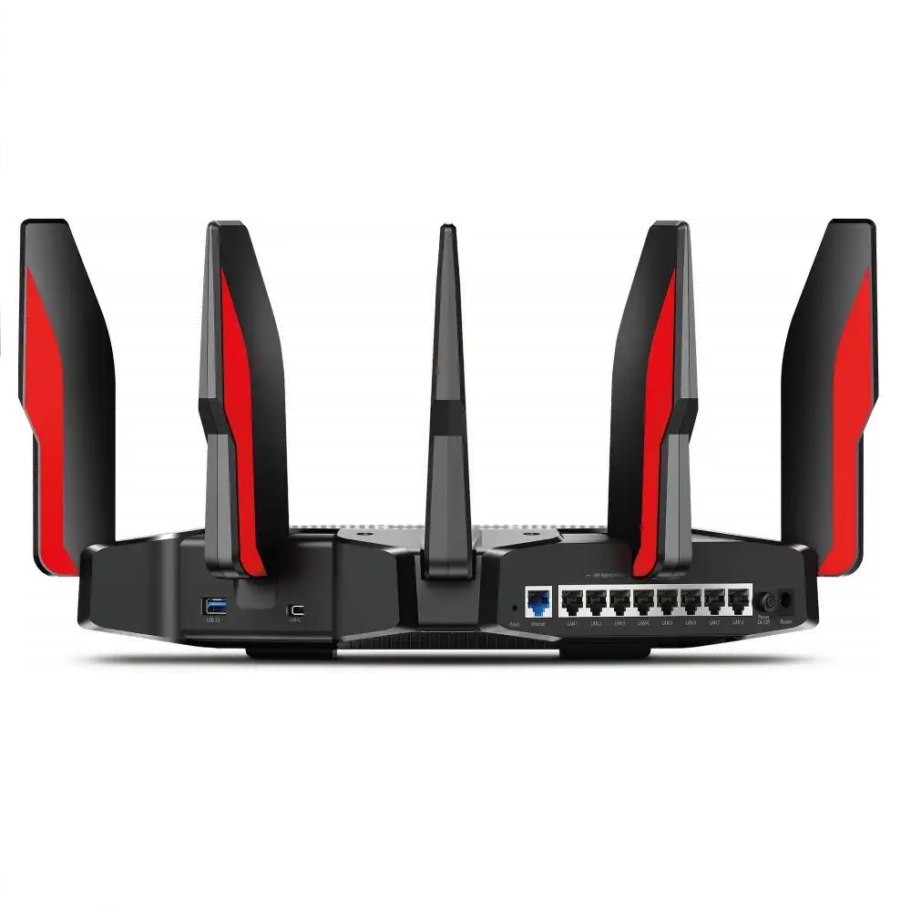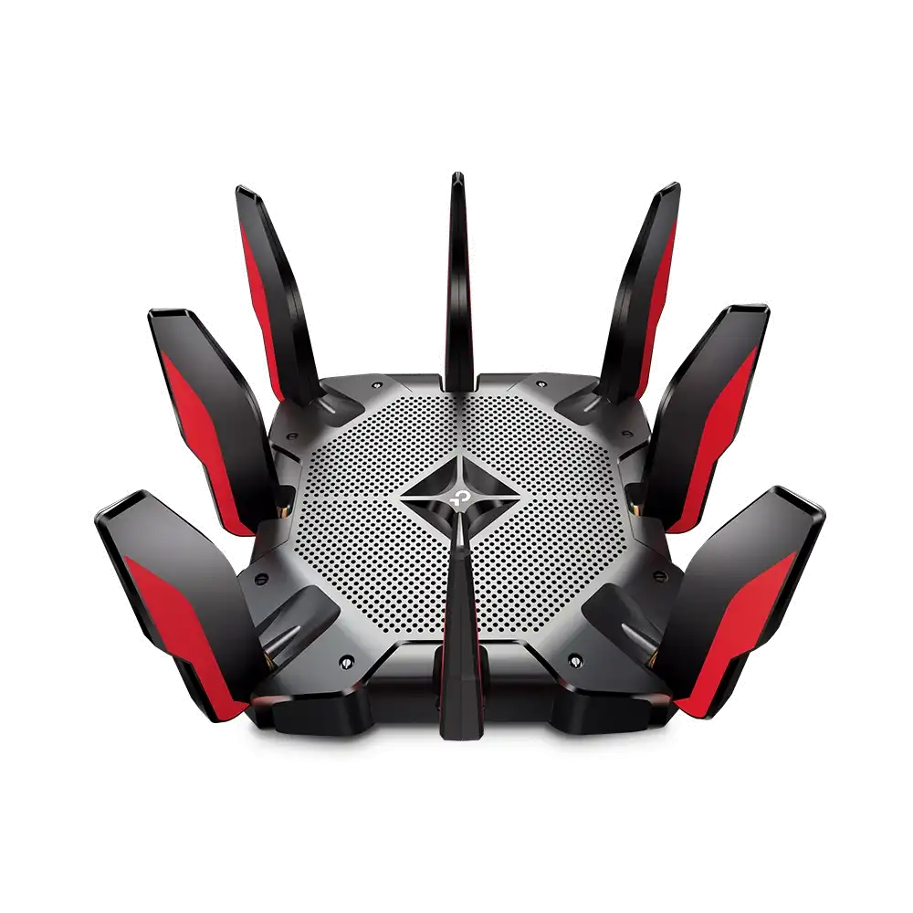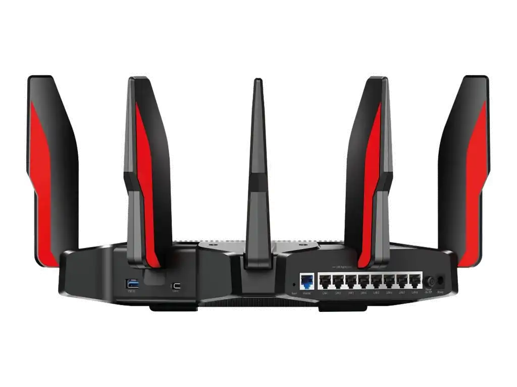 Mit dem Archer AX11000 bietet TP-Link erstmals einen speziell auf Gaming abgestimmten Router. Als 802.11ax-Router verfügt er über alle leistungsstarken Features und erweiterte Funktionen des Archer AX6000. Darüber hinaus ist der AX11000 ein Tri-Band-Router (1x 2,4GHz und 2x 5GHz), der mit 10756 Mbit/s die Geschwindigkeit von Wireless Routern auf ein völlig neues Niveau hebt und aufgrund modernster Hardware, komplementärer Schnittstellen und umfangreichen Software-Optimierungen ein exzellentes Spielerlebnis gewährt. Mit dem AX11000 können Benutzer ein Band explizit dem Gaming zuweisen, während die beiden anderen Bänder ein Hochgeschwindigkeits-WLAN für sämtliche anderen Anwendungen im Haushalt bereitstellen. Beim Umschalten in den Spielmodus der QoS-Einstellung priorisiert der AX11000 Gaming-Anwendungen für eine optimale Spieleleistung. Neben dem Spielmodus können Nutzer bestimmte Geräte priorisieren, um eine mögliche Drosselung dieser Geräte zu vermeiden. Stark im WLAN-Bereich, spielt der Archer AX11000 für die per Kabel angebundenen Geräte seine maximale Stärke aus. Der 2.5Gbps WAN-Port ist dazu da, die Internet-Geschwindigkeit voll auszunutzen, während acht Gigabit Ethernet-Ports Profi-Anforderungen an Spielen über das LAN problemlos erfüllen. Die kabelgebundenen Verbindungen machen das Spiel stabiler und schneller. Darüber hinaus können zwei LAN-Ports kombiniert werden, um die Verbindungsgeschwindigkeit von 1 Gbit/s auf 2 Gbit/s zu verdoppeln.