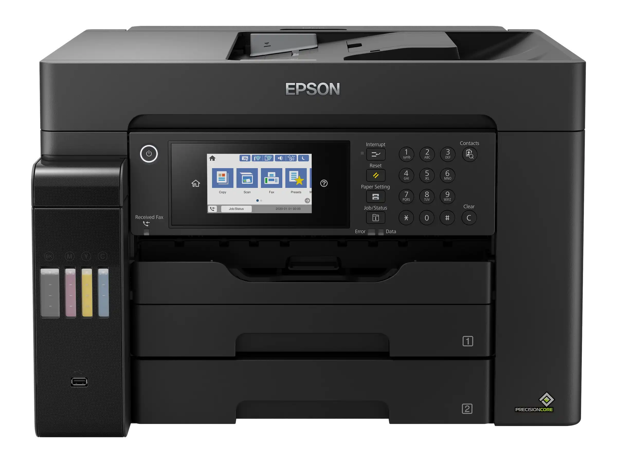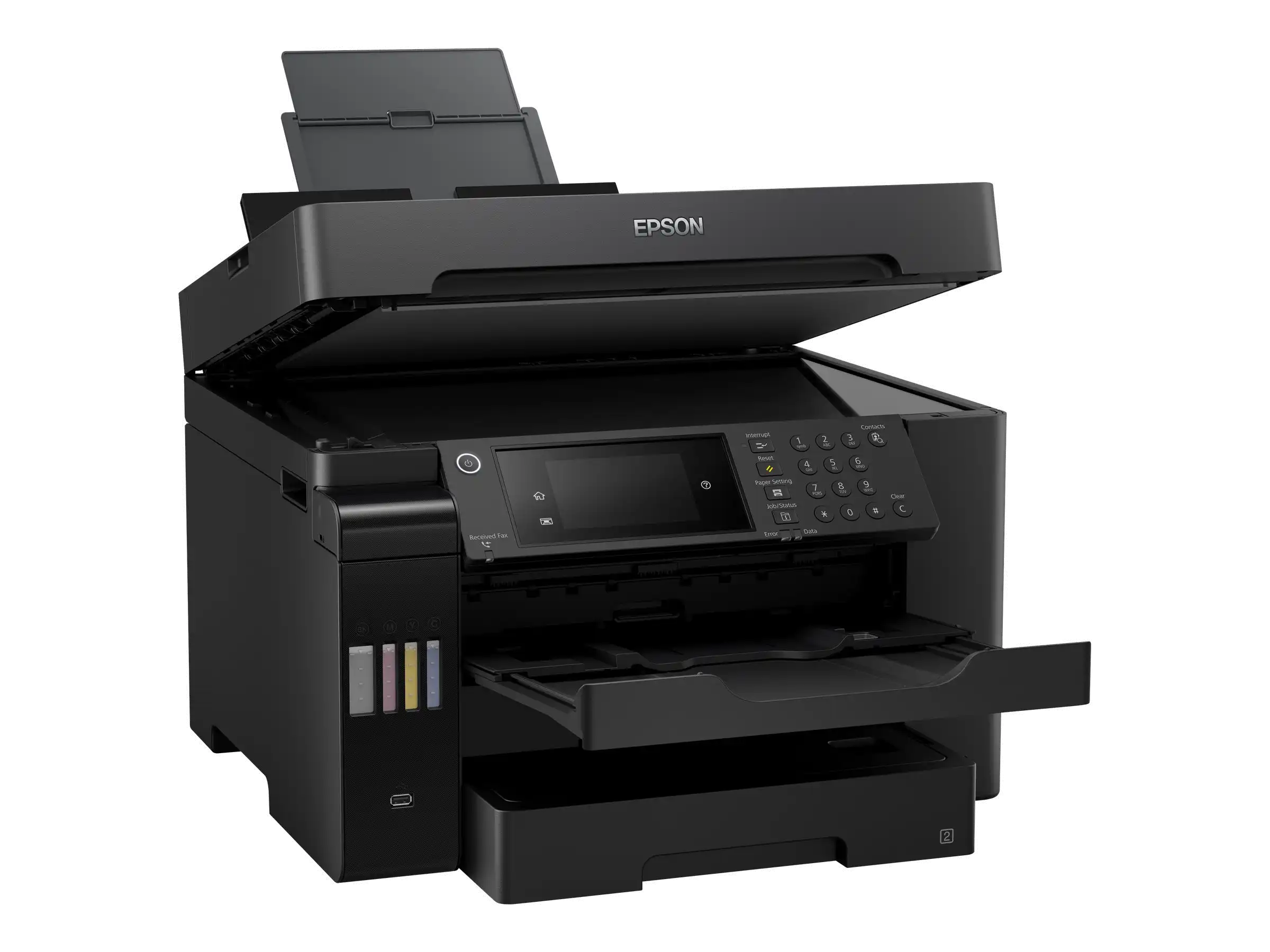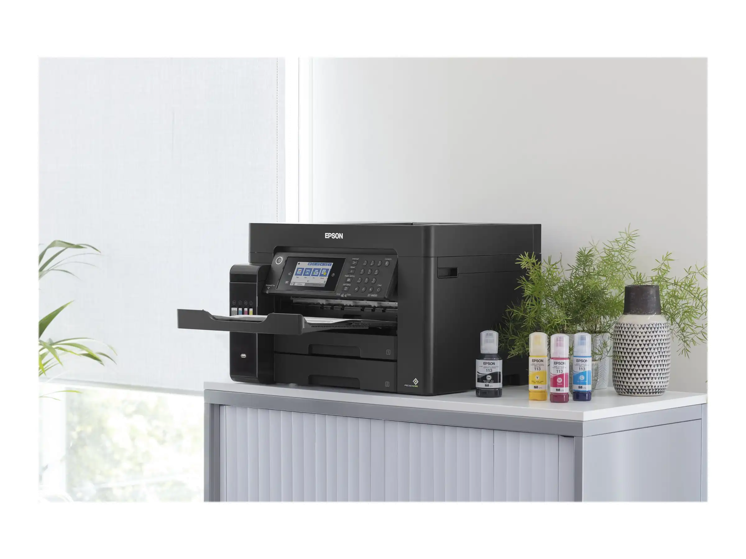 DIN-A3-EcoTank-Drucker mit vielen Funktionen Der ET-16650 wurde für das Drucken, Scannen, Kopieren und Faxen bis zum Format DIN A3+ konzipiert. Sämtliche Funktionen können Sie einfach und bequem über den 10,9 cm großen LCD-Touchscreen mit zusätzlichen Tasten auswählen und ausführen.