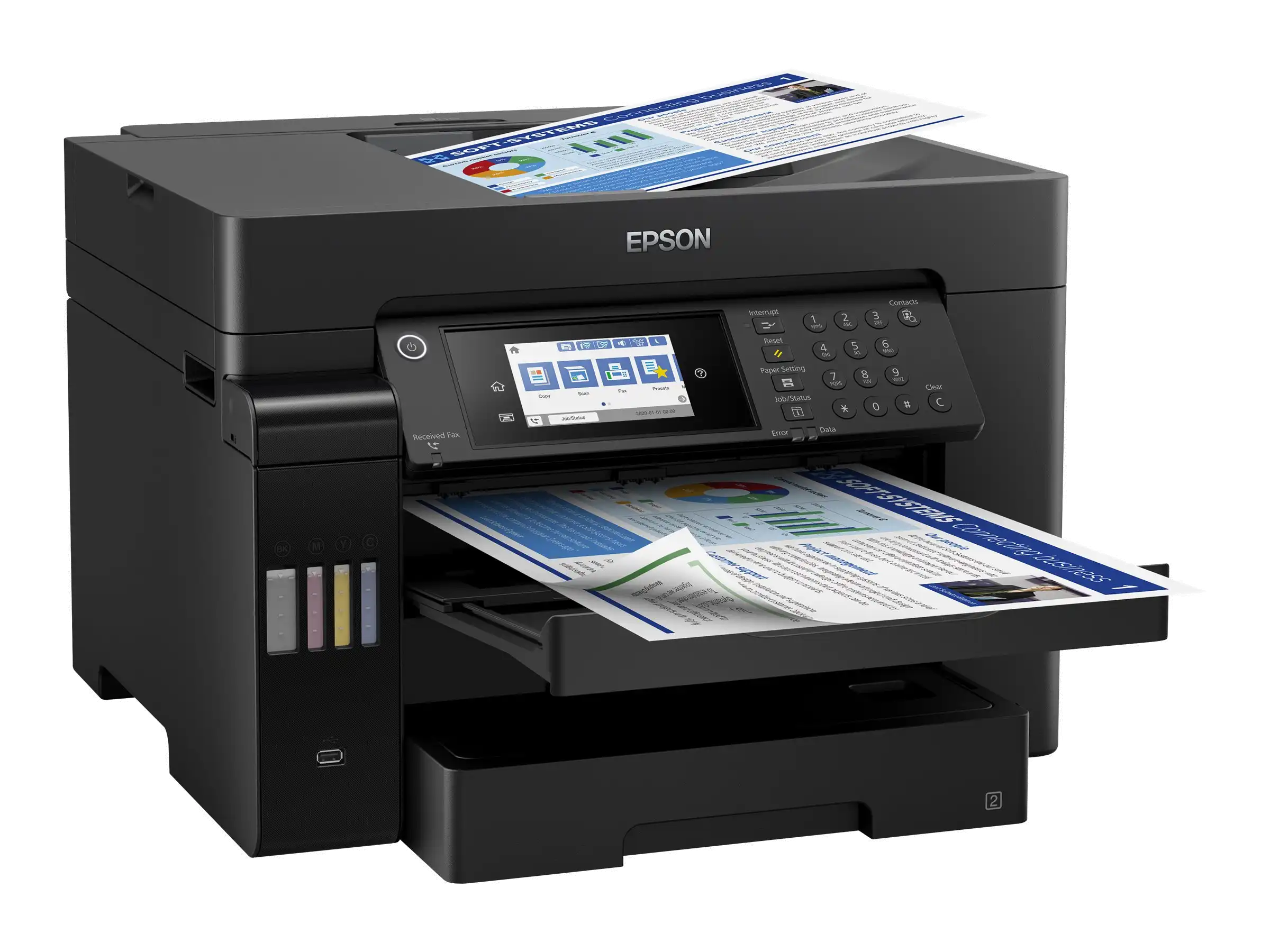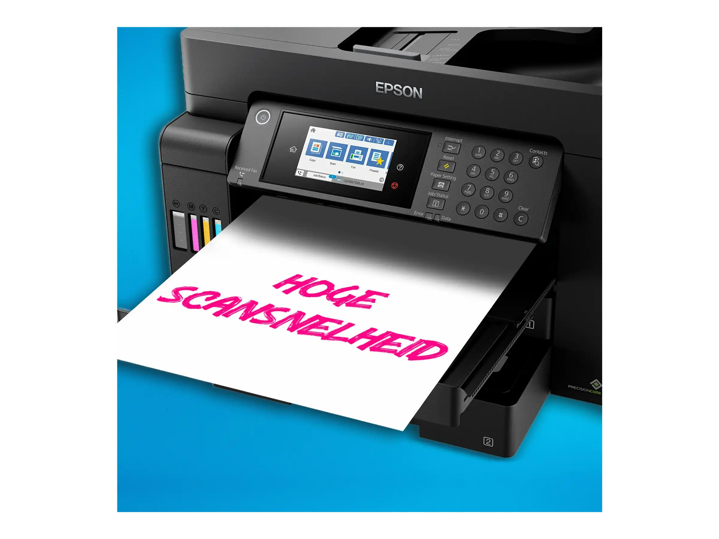 - Die EcoTank Technologie ermöglicht es, mit großen Tintenbehältern zu arbeiten, was den Kosten pro Seite erheblich senkt.