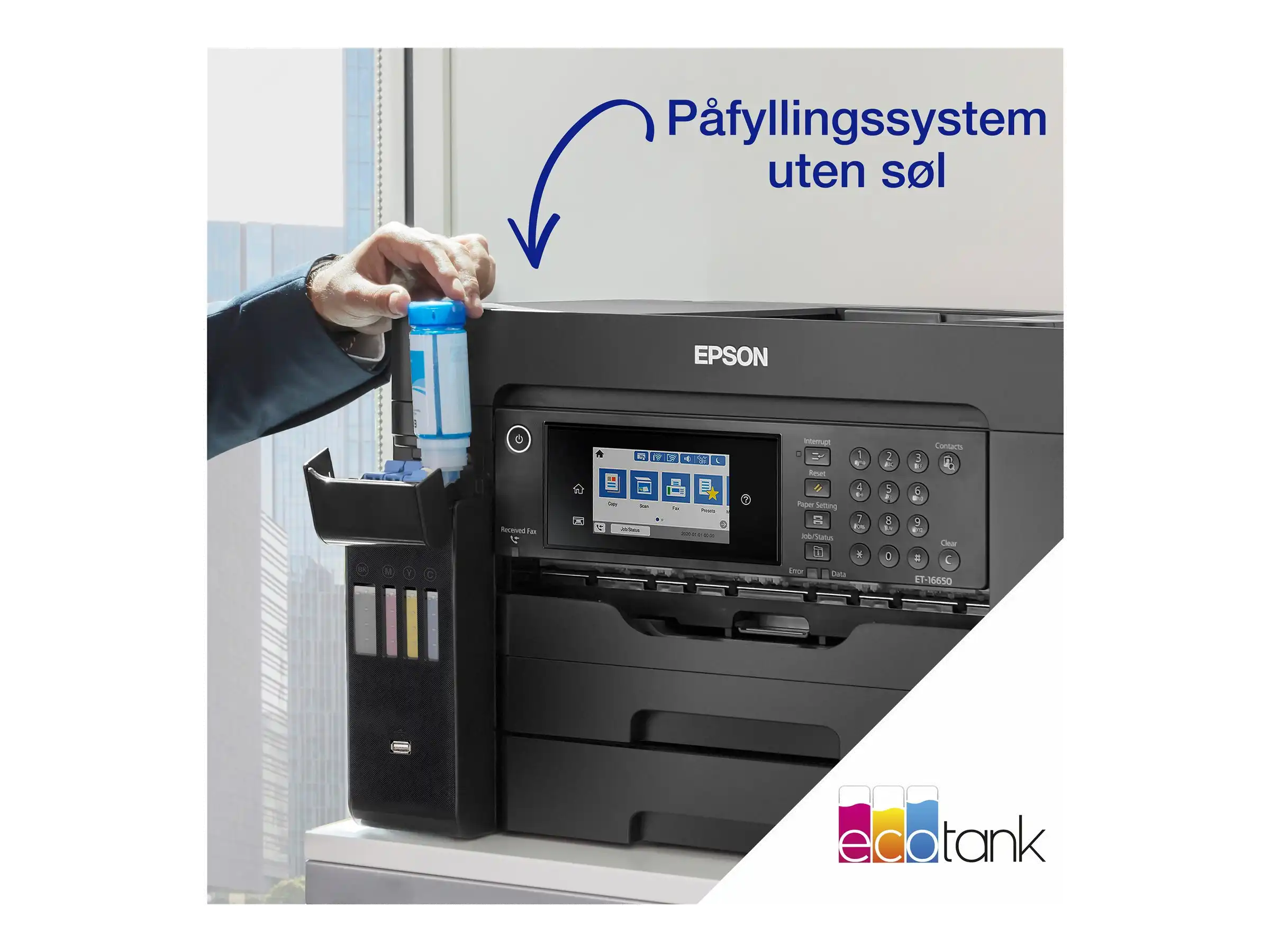 Weiter sparen Jedes Mal, wenn Sie drucken, spart dieser EcoTank-Drucker bares Geld, denn seine Kosten pro Seite sind unglaublich niedrig. Im Gegensatz zu anderen Druckern verfügt der EcoTank über große Tintentanks, die mit kostengünstigen Tintenflaschen nachgefüllt werden.