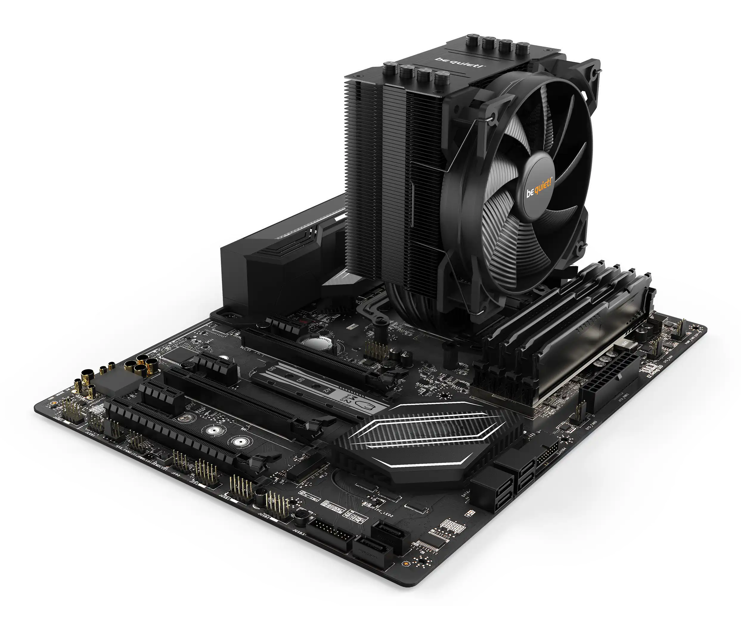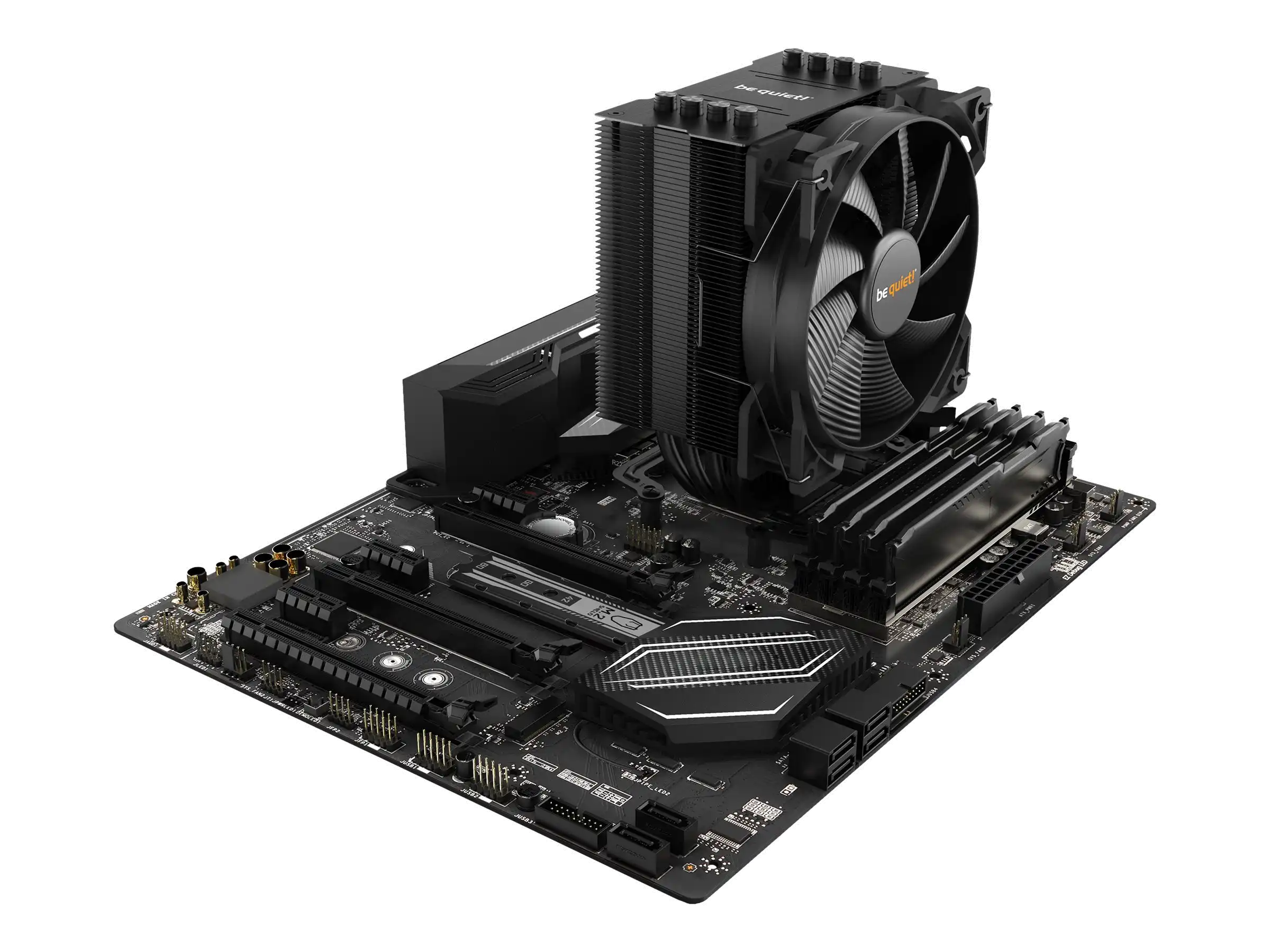 Kompatibel und kompakt Durch sein asymmetrisches Design ist der Pure Rock 2 passend für fast jede Konfiguration und eine ganze Reihe verschiedener Installationsvarianten. Dank seines komfortablen Montage-Systems lässt er sich vollständig von oben auf das Mainboard verbauen.