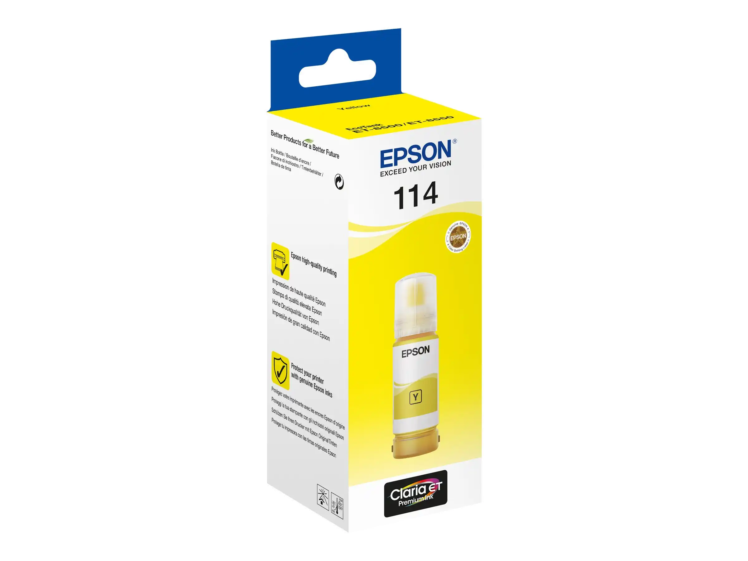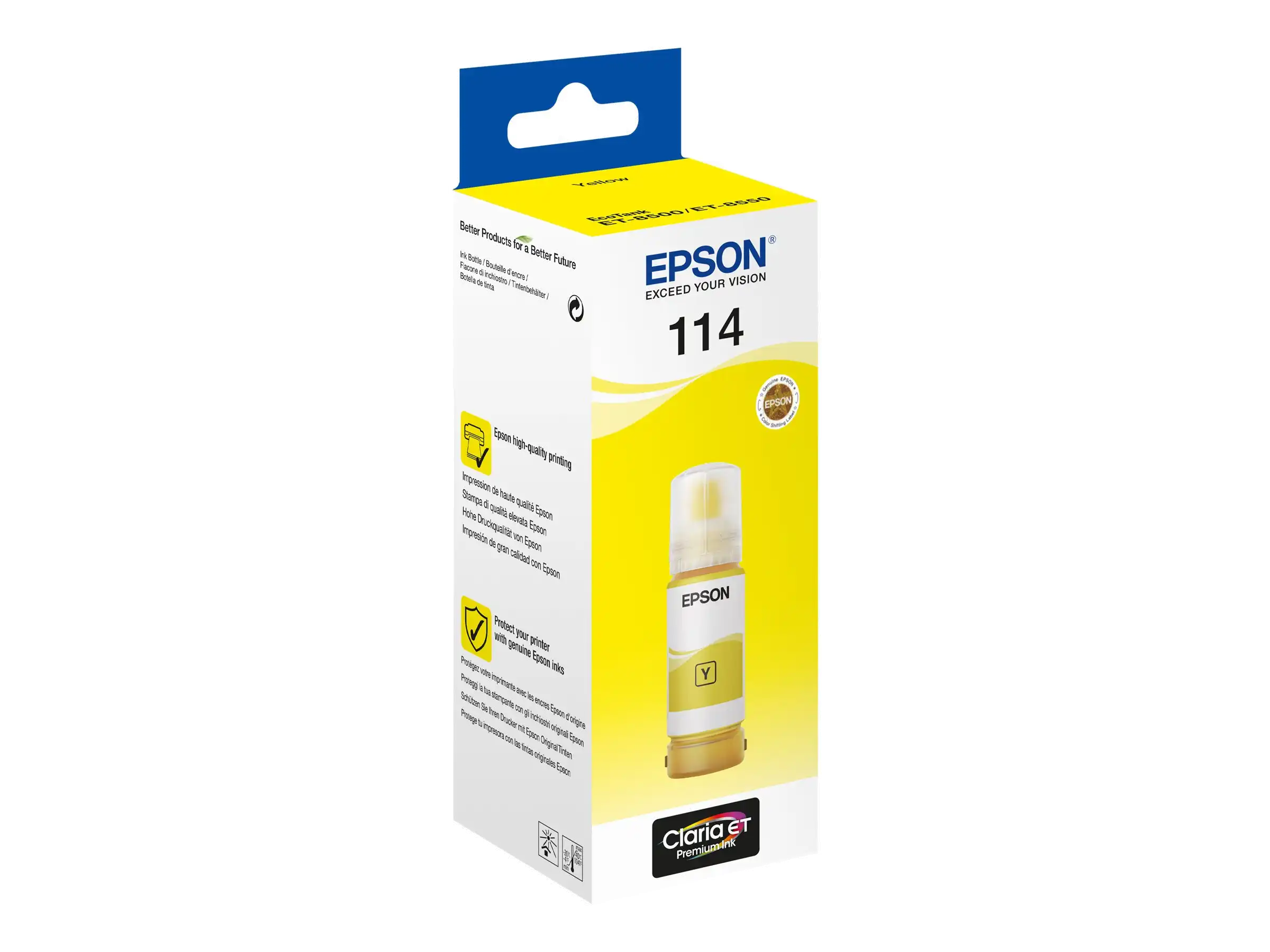 Verlassen Sie sich auf das Original Genießen Sie einfaches und zuverlässiges Drucken mit Epson Original-Tinten. Wir investieren in Forschung sowie Hightech-Fertigungsanlagen und unterziehen unsere Produkte strengen Tests, um Ihnen eine optimale Qualität zu bieten. Die Tintenflaschen von Epson sind zudem dank eines neuen Designs noch einfacher zu benutzen. Die neu konzipierten Flaschen machen das Nachfüllen zu einem Kinderspiel. Durch das Schlüssel-Schloss-Prinzip kann nur die jeweils passende Farbe in den entsprechenden Tintentank eingefüllt werden.