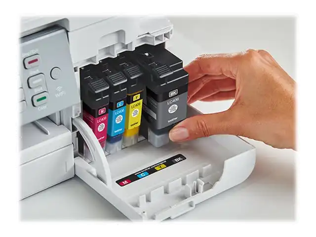 Behalten Sie den Tintenverbrauch schnell und einfach im Auge Brother hat seine Tintenpatronen überarbeitet, damit sie mehr Tinte enthalten, und einen internen Tintentank entwickelt, mit dem mehr Seiten ohne Unterbruch gedruckt werden können, ohne dass auf das kompakte Desktop-Format verzichtet werden muss. Dank der Seitenzähler-Funktion können Sie außerdem den Tintenstand auf Ihrem LCD-Display überprüfen, um Druckunterbrechungen zu vermeiden.