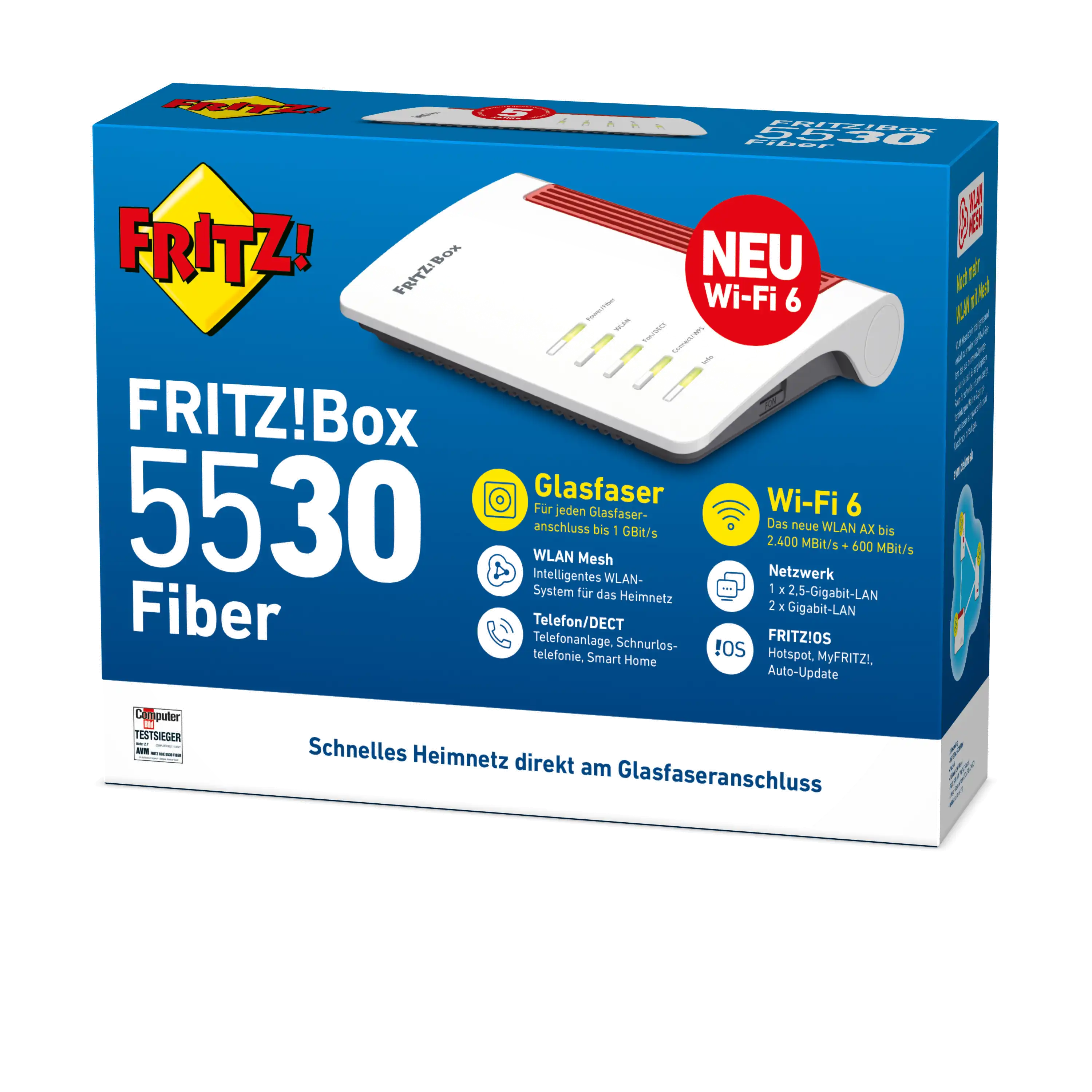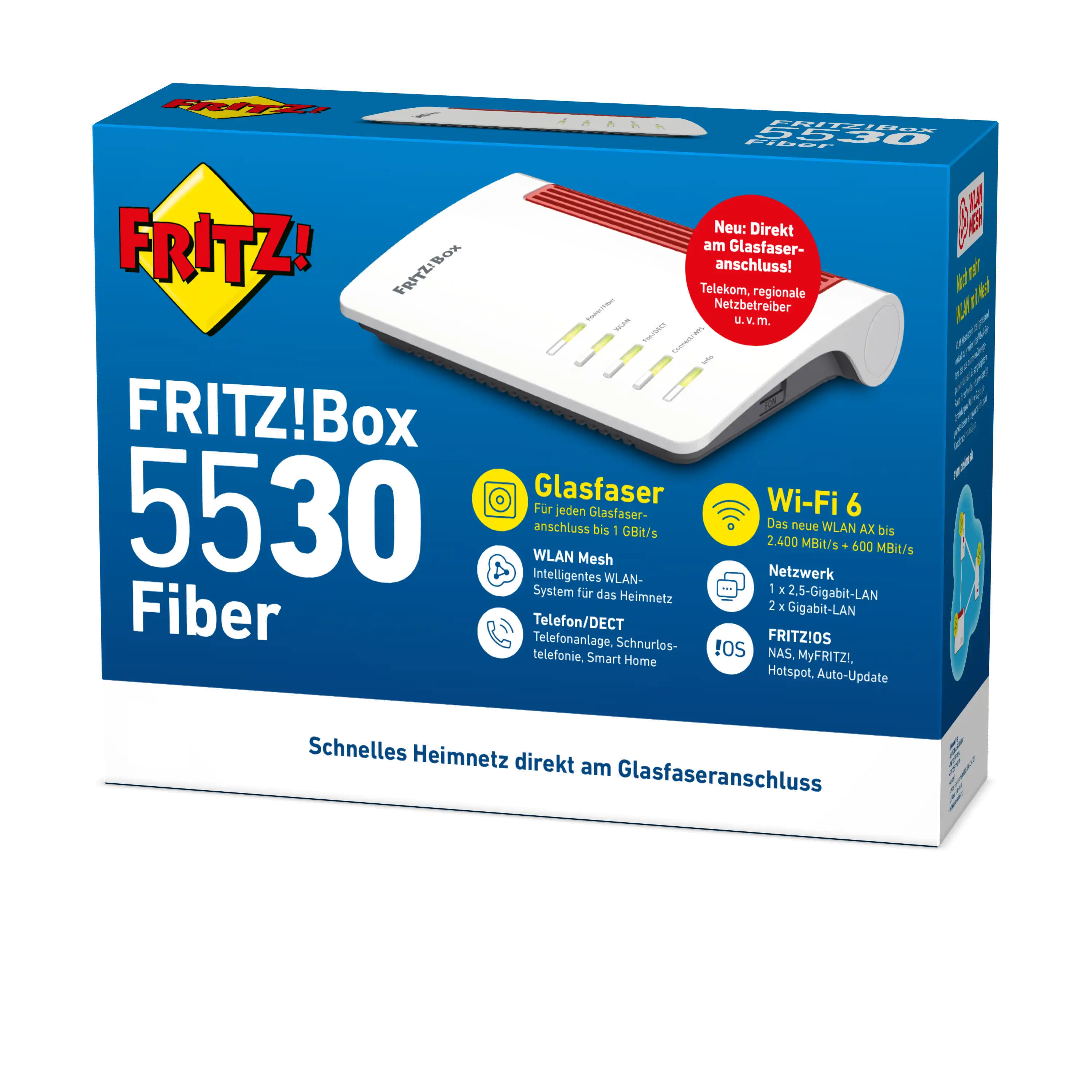 Dank des Internetstandards WLAN AX (Wi-Fi 6) mit Multi-User-MIMO und einem 2,5-Gigabit-LAN-Port ist die FRITZ!Box 5530 Fiber eine zuverlässige Zentrale für Ihr Heimnetz. Die Besonderheit des WLAN-Standards: Er ist dahingehend perfektioniert, eine Vielzahl an Geräten parallel ins Heimnetz zu integrieren. So können Sie all Ihre Geräte zu Hause jederzeit und überall problemlos nutzen.