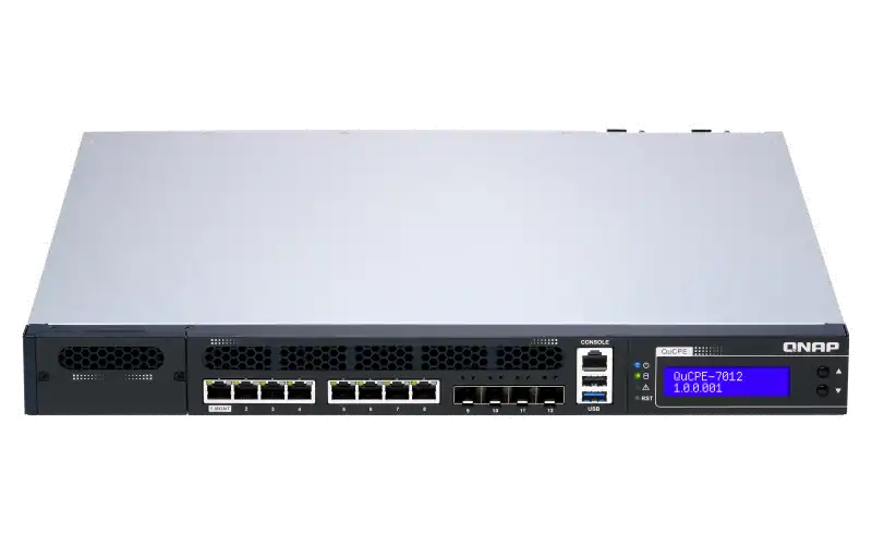 Das QuCPE-7012 läuft mit QNAPs proprietärem QNE-Network Betriebssystem und bietet bequeme und intuitive Network Service Composer und QuWAN SD-WAN-Lösungen für eine flexible Netzwerkbereitstellung und die Erweiterung der Netzwerkinfrastruktur an mehreren Standorten