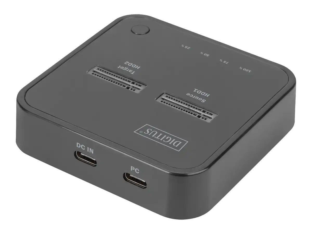 Die duale NVMe Docking Station von DIGITUS® kann M.2 SSDs von bis zu 4 TB pro Schacht aufnehmen. Verwalten Sie insgesamt 2 SSDs in verschiedenen Formaten mit insgesamt bis zu 8 TB Speicher. Durch die integrierte Offline-Klonfunktion ist es sogar möglich, ohne ein verbundenes Endgerät, Speichermedien per Knopfdruck zu duplizieren. Der Fortschritt des Kopiervorgangs wird durch LED-Indikatoren am Gerät angezeigt. Unterstützt werden M-Key und B&M-Key NVMe SSDs in den gängigen Formaten 2242, 2260, 2280 & 22110. Erweitern Sie auf einfache Weise die Speicherkapazität zahlreicher USB-C Geräte wie PC, Notebook, TV-Geräte, Spielekonsolen oder Router.