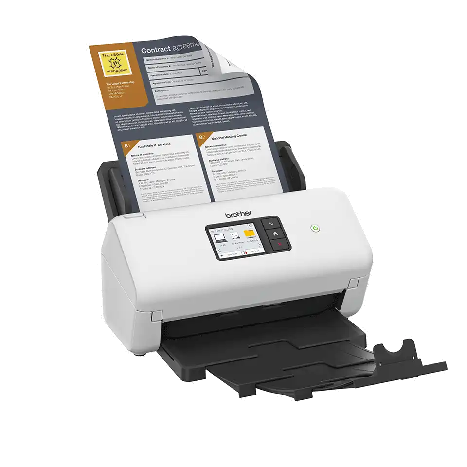 Schnell und zuverlässig Der ADS-4500W mit hochwertigen und robusten Rollenmechanismen verfügt über einen automatischen Dokumenteneinzug mit einer großen Kapazität von 60 Blatt und kann bis zu 35 Seiten pro Minute scannen.