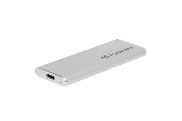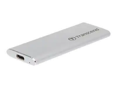 Die ESD260C von Transcend ist eine tragbare SSD mit einem robusten Metallgehäuse in silbernem Farbton, einer USB 3.1 Gen 2-Schnittstelle für unübertroffene Übertragungsraten und einem USB Typ-C-Anschluss. Darüber hinaus wiegt das ESD260C nur 33 g und lässt sich daher bequem mitnehmen.