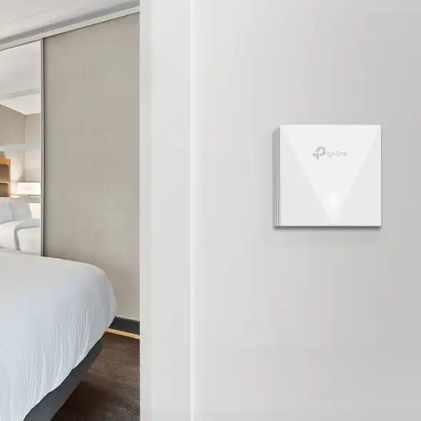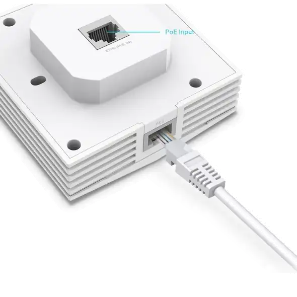 EAP650-Wall Omada AX3000 Wall-Plate Dual-Band Wi-Fi 6 Access Point PORT: 2× Gigabit RJ45 PortSPEED: 574Mbps at 2.4 GHz + 2402 Mbps at 5 GHzFEATURE: Compatible with EU Standard Junction Box, 802.3at/af PoE, 2× Internal Antennas, MU-MIMO, Band