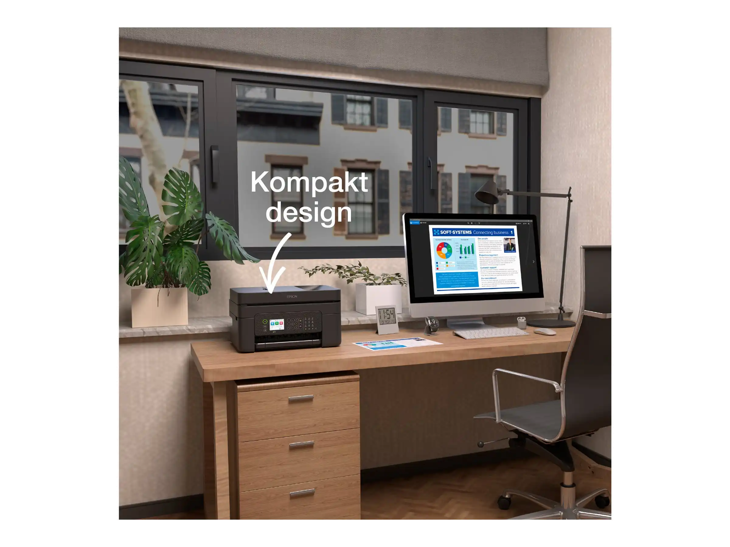 Kompakt und elegant Dank seines kompakten und modernen Designs fügt sich dieser Tintenstrahldrucker problemlos in jede Home-Office-Umgebung ein.