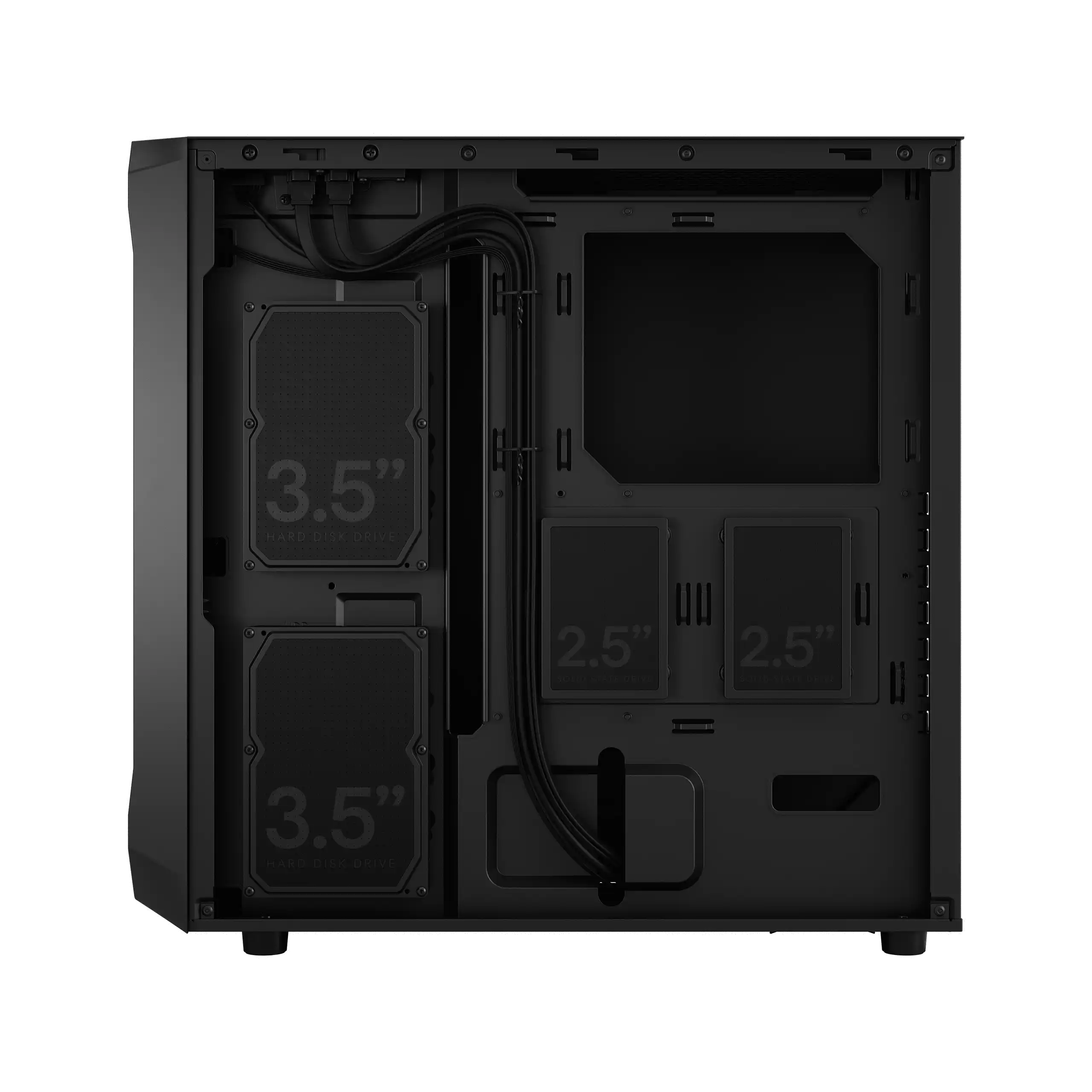 Intelligente Konfiguration - SSD Clips hinter dem Motherboard für eine einfache Installation - HDD Installation direkt am Motherboard-Träger - SSD Bracket Kit (Typ D, separat erhältlich) ermöglicht zwei zusätzliche HDD Positionen - Multibracket Position erlaubt die Installation eines Laufwerks am Boden Panel (separat erhältlich)