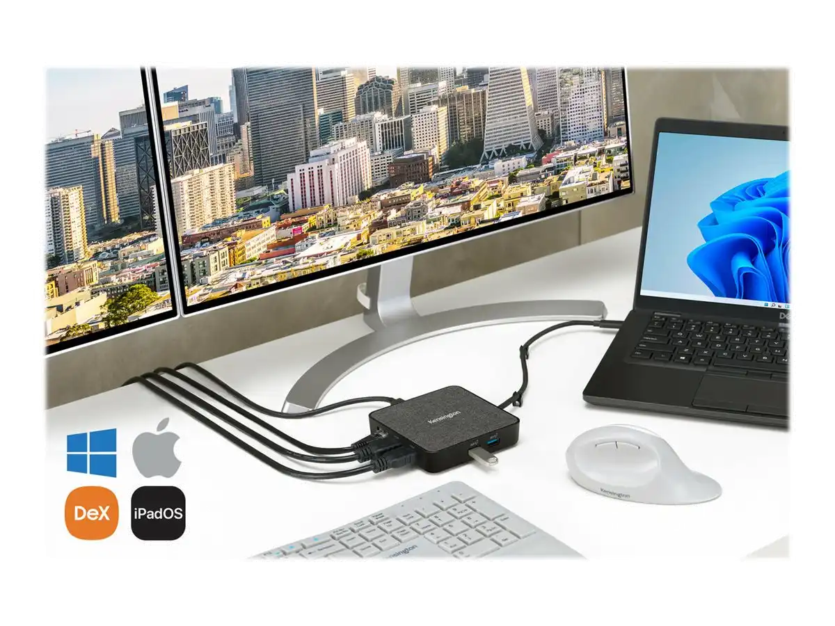 Kensington präsentiert mit der MD120U4 USB4 Mobilen Dockingstation eine der ersten portablen USB4-Dockingstationen und setzt damit erneut innovative Maßstäbe. Die MD120U4 bietet die volle Leistung von USB4, einschließlich dualer 4K*-Unterstützung für zwei Monitore, Upstream-Geschwindigkeit von bis zu 40 Gbit/s und 100 W Power Pass-Through - in einer Lösung, die für die Unterstützung zahlreicher Geräte und Betriebssysteme konzipiert ist. Der Power-Pass-Through ist die ideale Lösung für hybride Arbeitskräfte, die mit weniger Gewicht und Unordnung unterwegs sein wollen, denn er macht ein zusätzliches Netzteil überflüssig. Eine Vielzahl von leistungsfähigen Anschlüssen reduziert den Bedarf an zusätzlichen Adaptern auf ein Minimum. Enthält 2 x HDMI-Anschlüsse, 1 x USB-C-Anschluss, 2 x USB-A-Anschlüsse und 1 x 2,5 Gbit/s Ethernet-Anschluss für Produktivität an jedem Ort.