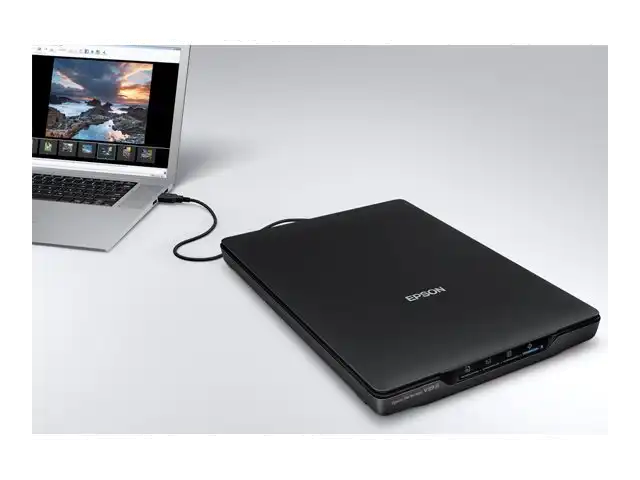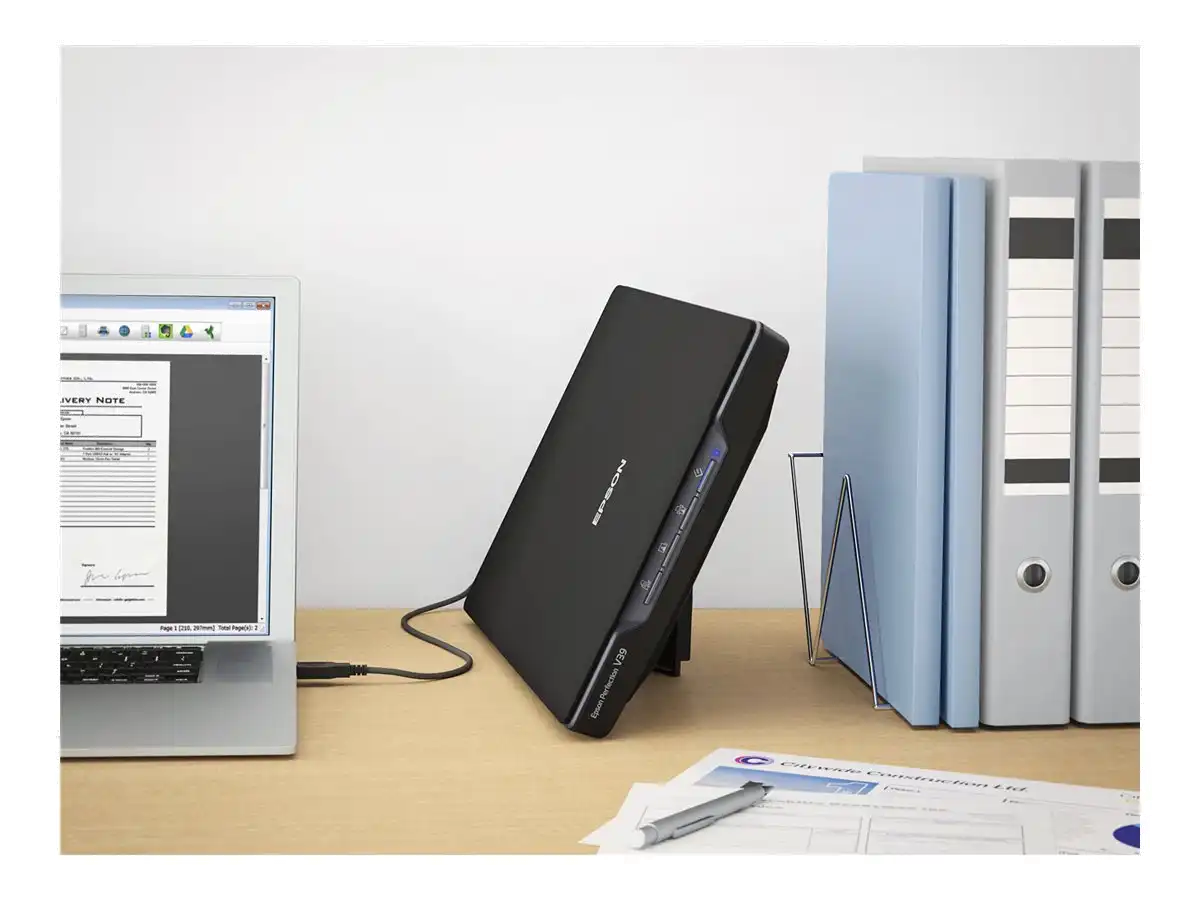 Foto- und Dokumentenscanner Erfassen, speichern und teilen Sie Ihre Bilder und Dokumente schnell und einfach mit diesem schlanken, platzsparenden Scanner für zuhause und fürs Büro. Dieser benutzerfreundliche Scanner erhält seinen Strom über ein USB-Kabel und besitzt ein schlankes und platzsparendes Design. Mit seinem integrierten Ständer lässt sich der Scanner sowohl flach als auch seitlich verwenden, um auf dem Schreibtisch Platz zu sparen. Mit einer Auflösung von 4.800 dpi und schnellen Scangeschwindigkeiten liefert der V39II im Handumdrehen hochwertige Ergebnisse. Der Scanner wird aus 30 % recyceltem Kunststoff hergestellt, wodurch die Umweltbelastung verringert wird.