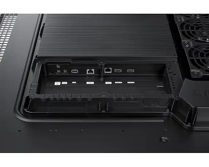 Starke Leistung mit schlankem Design Das schlanke All-in-One-Design ermöglicht eine einfache Installation, während die Langelebigkeit des Displays durch die IP56-Zertifizierung, Antireflexionstechnologie, Schutz vor Beschädigungen und einem effizienten Kühlsystem gewährleistet wird. Der integrierte Schaltkasten fasst die Betriebskomponenten zusammen und sorgt für einen ultraschlanken Rahmen.