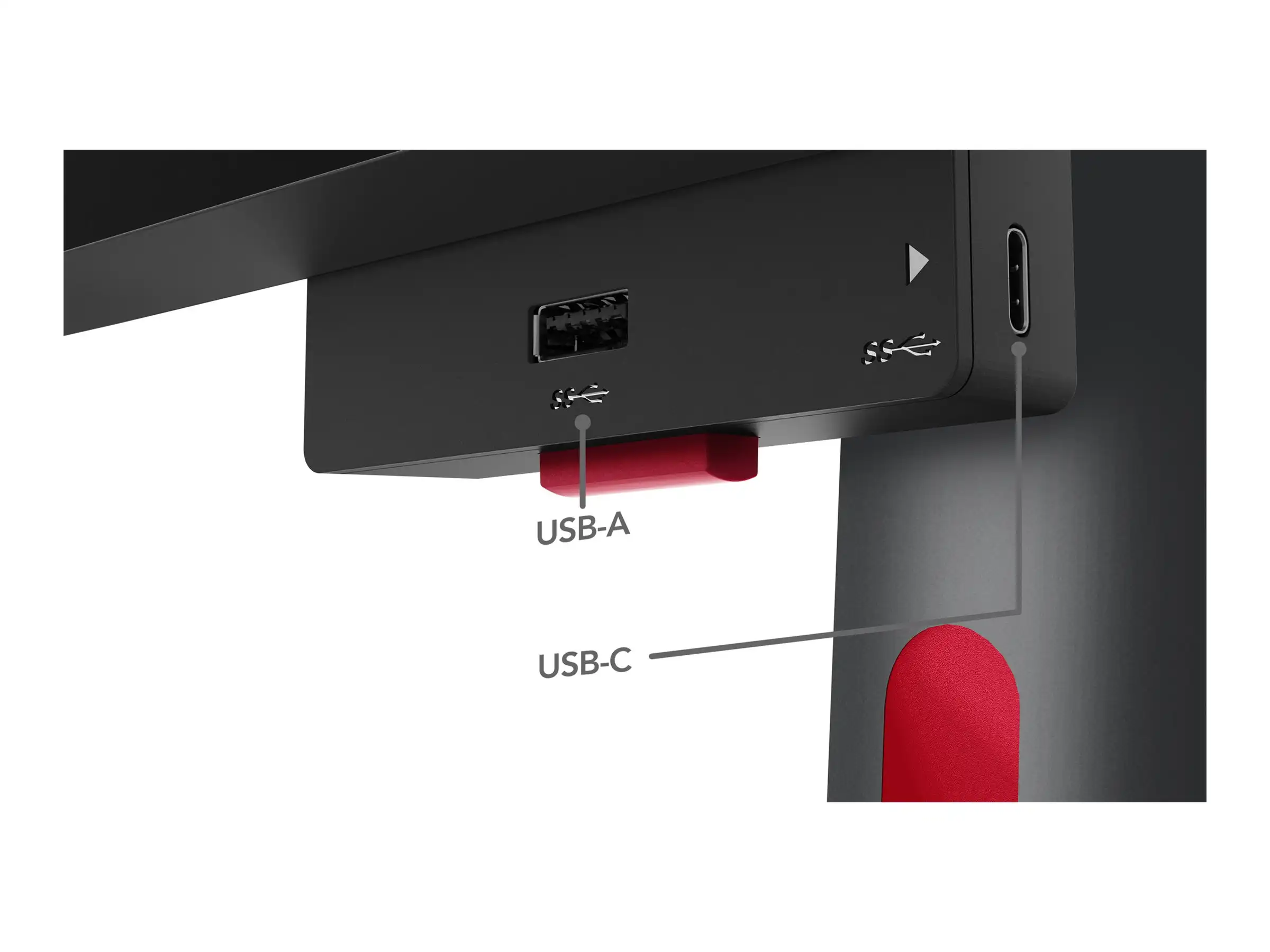 Slot für Sicherheitsschloss (Kabelschloss getrennt erhältlich), integrierte Kabelführung, Kleine Unterstützung