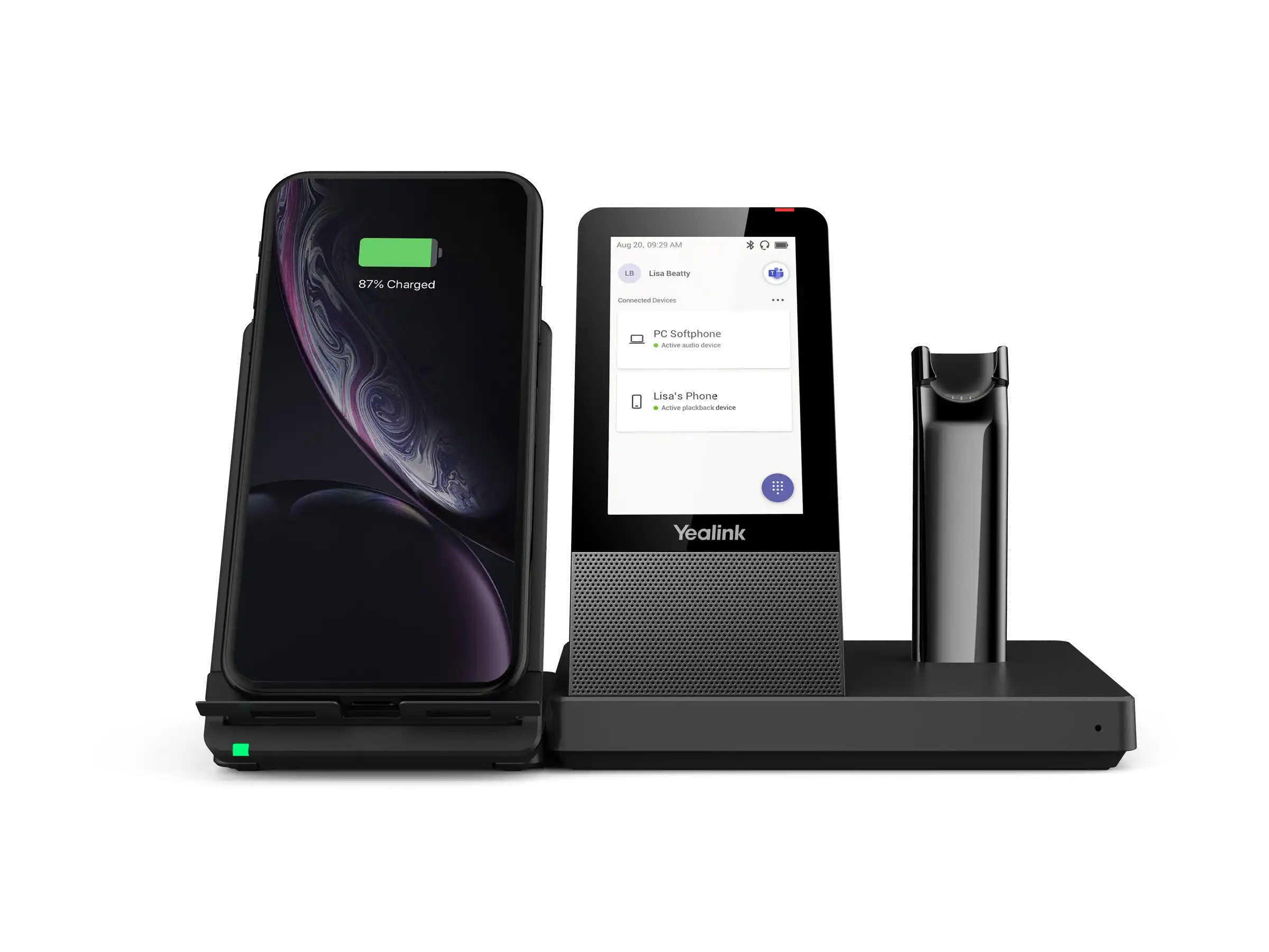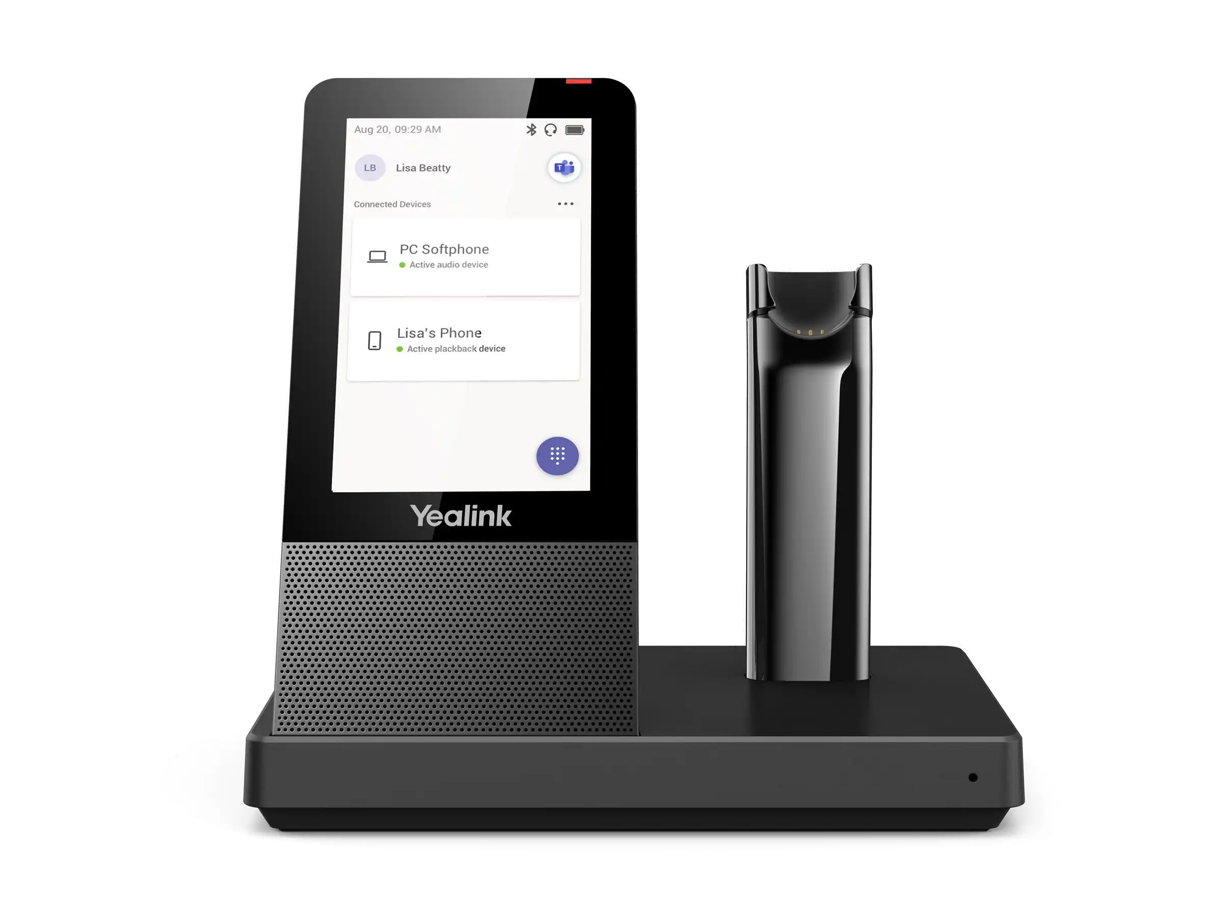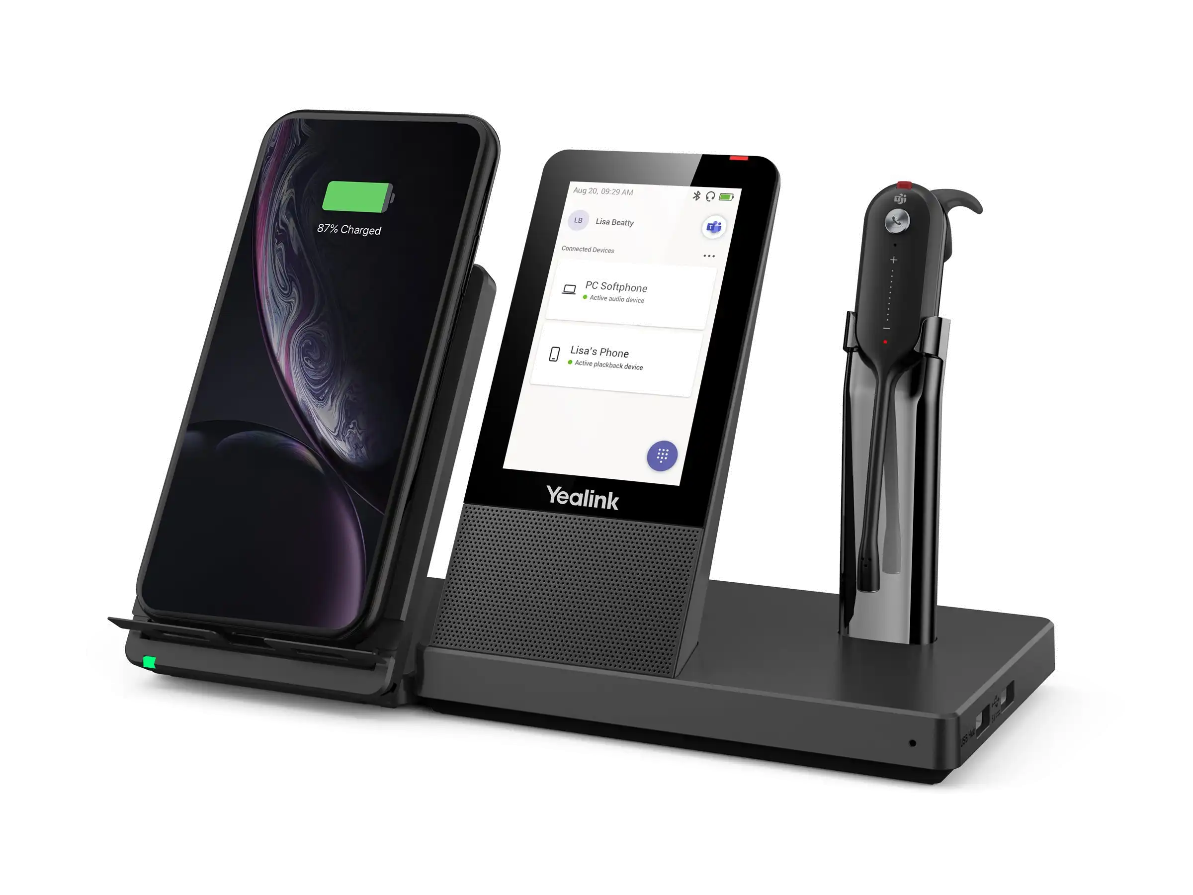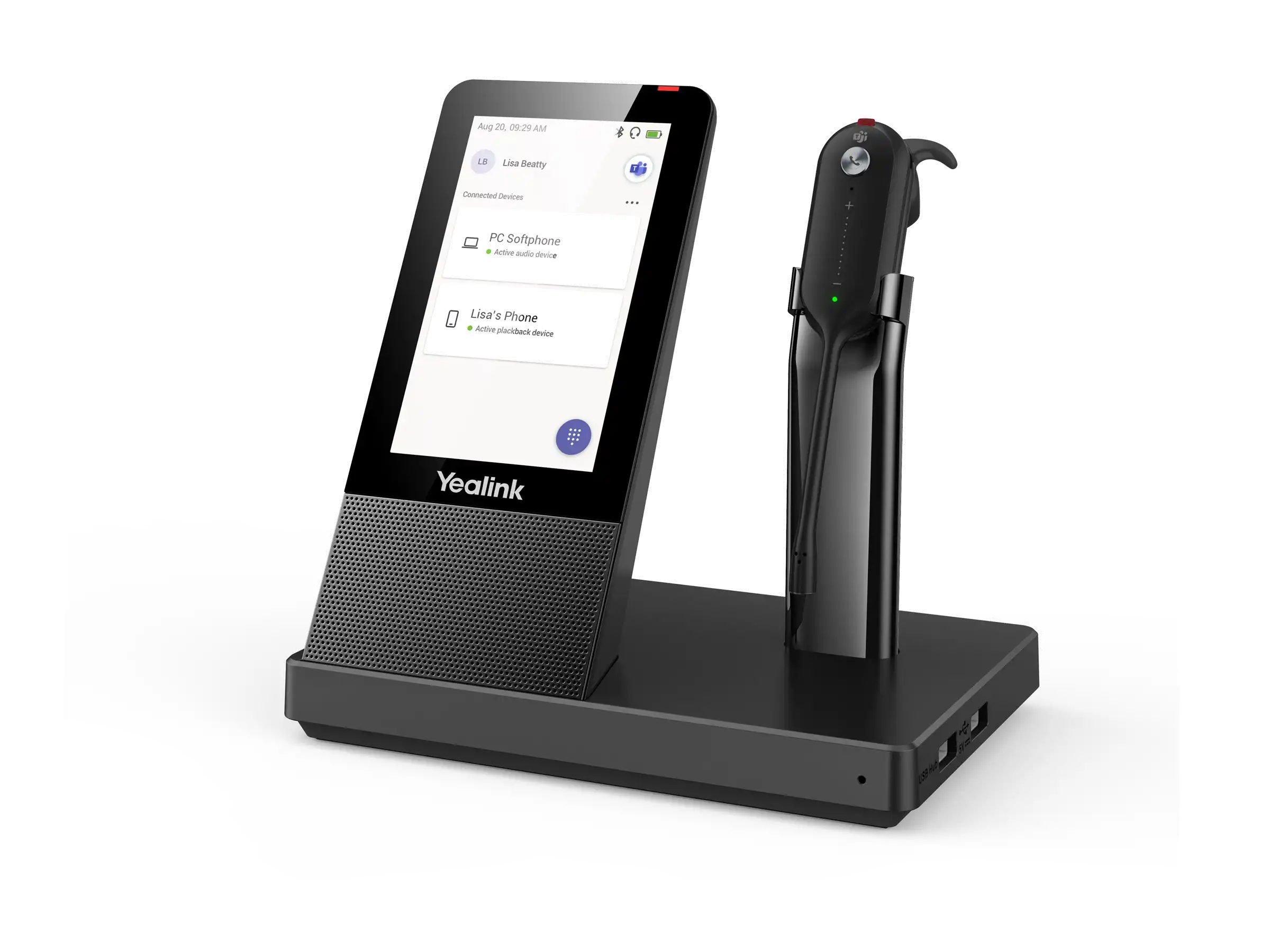 ProdukttypHeadset - DECT / Bluetooth - kabellosDetails zu Abmessungen & GewichtBasisstation: 344 gEmpfohlene VerwendungKonferenzMerkmaleIntegrierter Hub mit 2 USB-Anschlüssen, 4,0" (480 x 800) großer kapazitiver TouchscreenMax. Betriebsabstand120 mAudioausgang