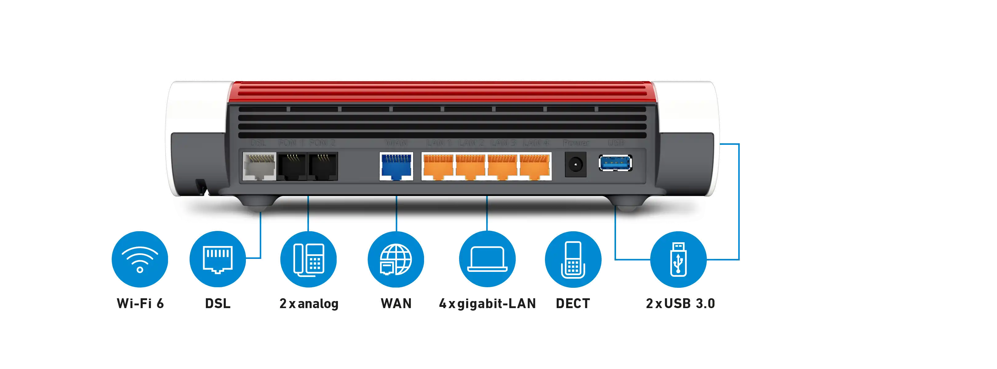 So macht Telefonieren Spaß Die FRITZ!Box 7590 AX enthält eine vollwertige Telefonanlage, an der alle Telefone Anschluss finden - egal ob IP, ISDN oder analog. An der integrierten DECT-Basis melden Sie bis zu sechs Schnurlostelefone an; die FRITZ!Fon-Modelle sind die ideale Bereicherung für Ihr Telefonvergnügen. Anrufbeantworter und Faxfunktion inklusive E-Mail-Weiterleitung bieten zusätzlichen Komfort.