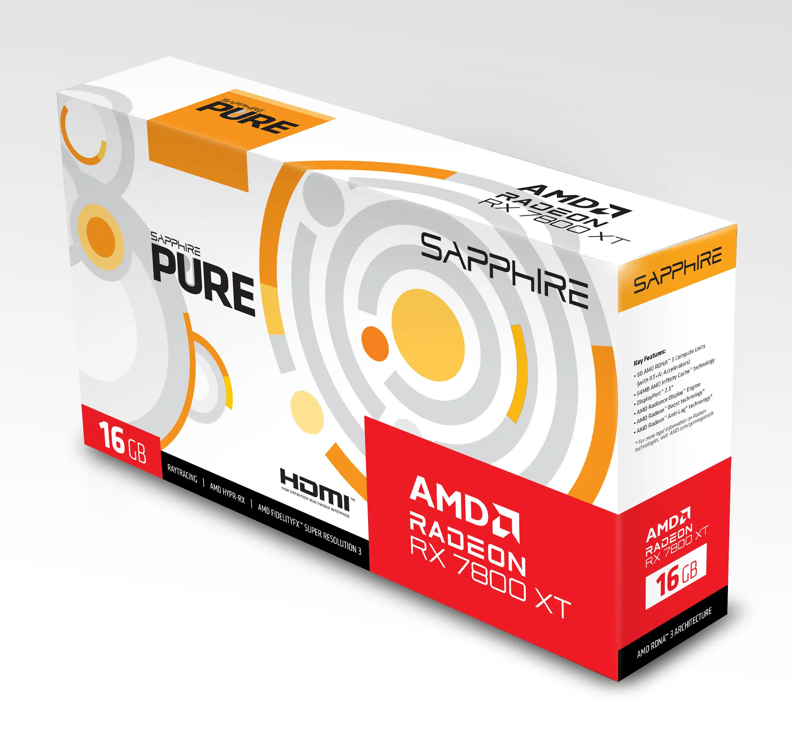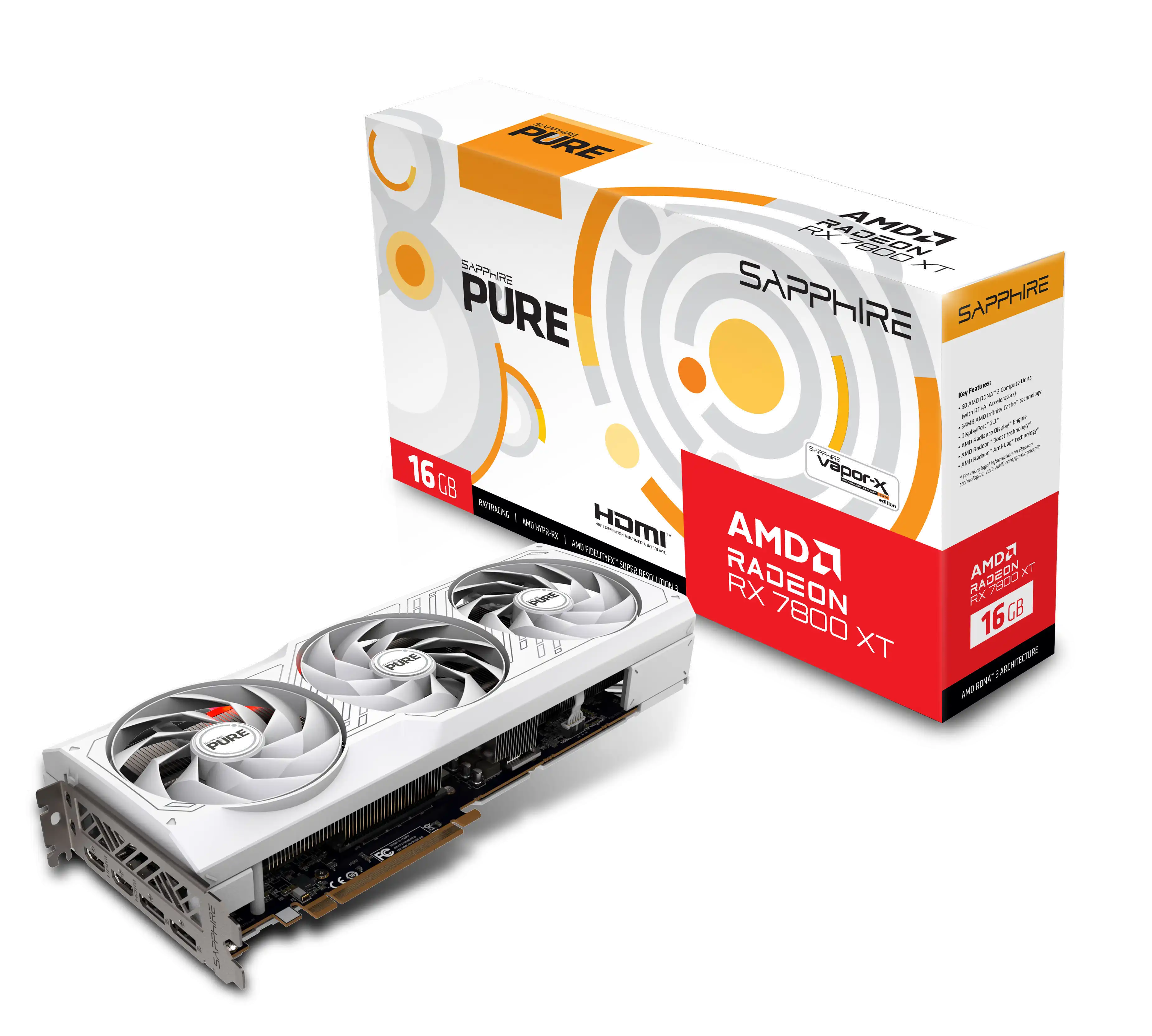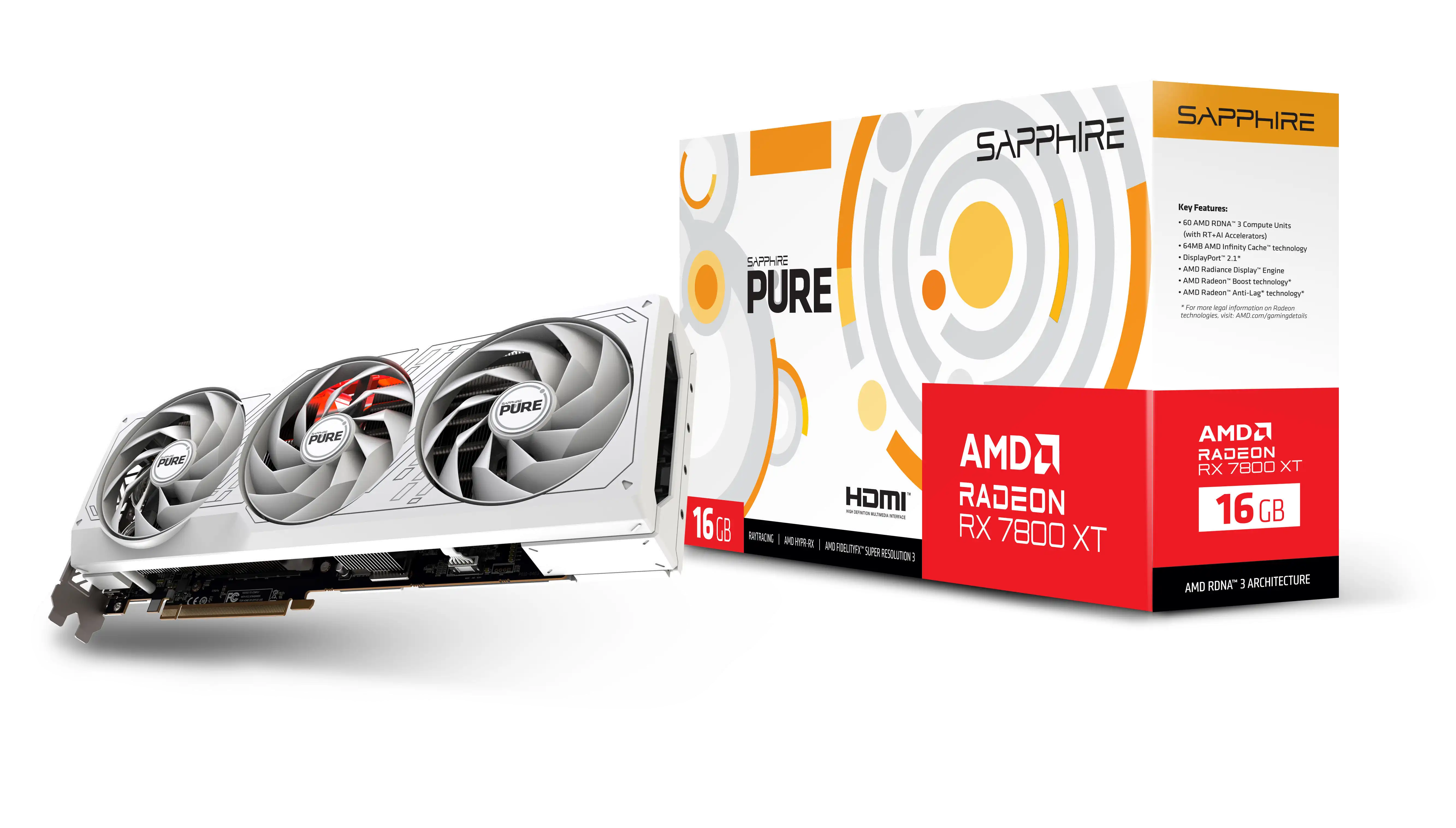 Pure Radeon RX 7800 XT 16GB - Grafikkarten - Radeon RX 7800 XT - 16 GB GDDR6 - PCIe 4.0 x16 - 2 x DisplayPort, 2 x HDMI