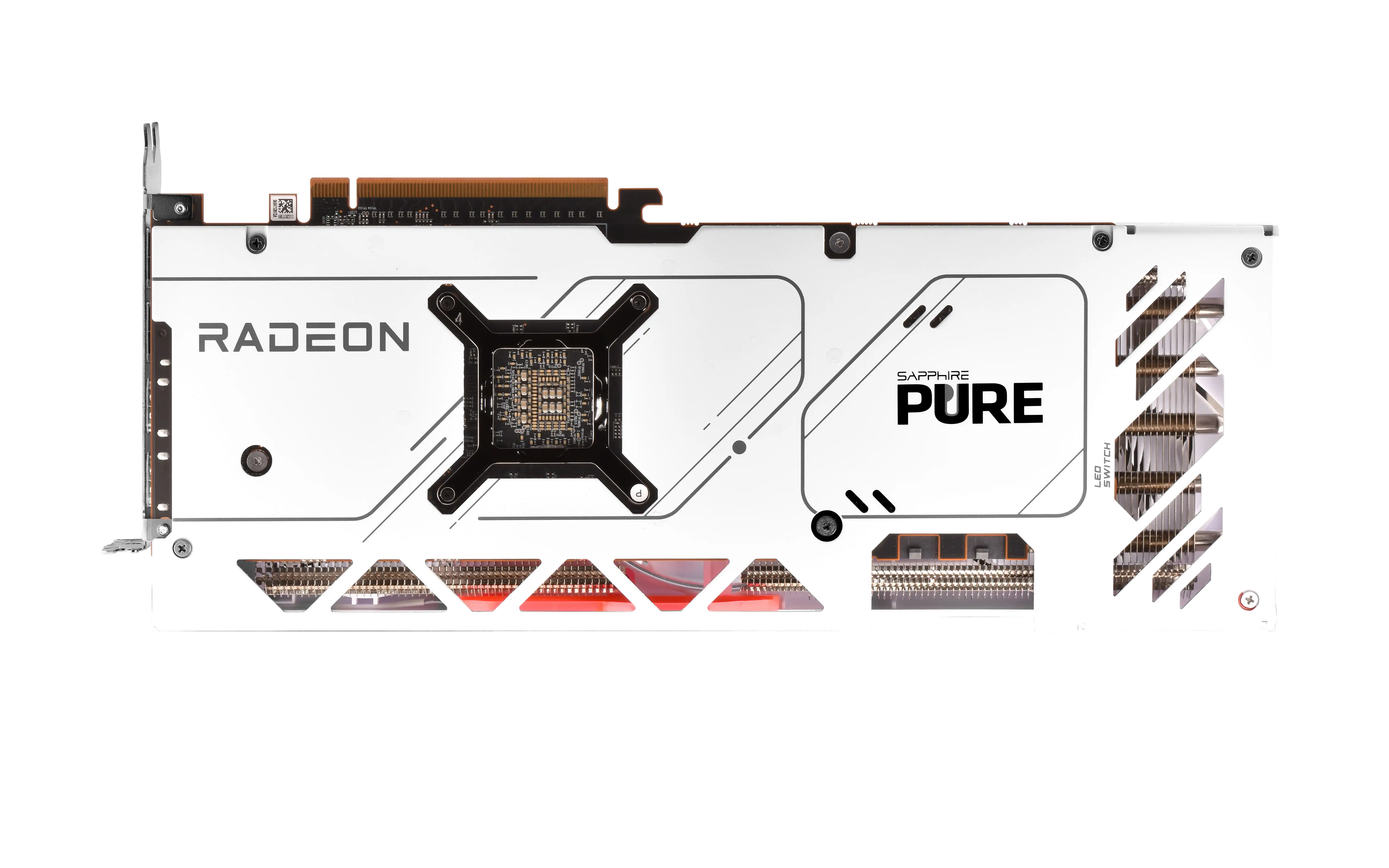 SAPPHIRE-Logo mit roten LEDs Den Karten noch schicke graue, in die Oberfläche eingelassene Akzente und ein SAPPHIRE-Logo mit roten LEDs, deren Beleuchtung sich mit einem Hardwareschalter nach Belieben ein und ausschalten lässt.