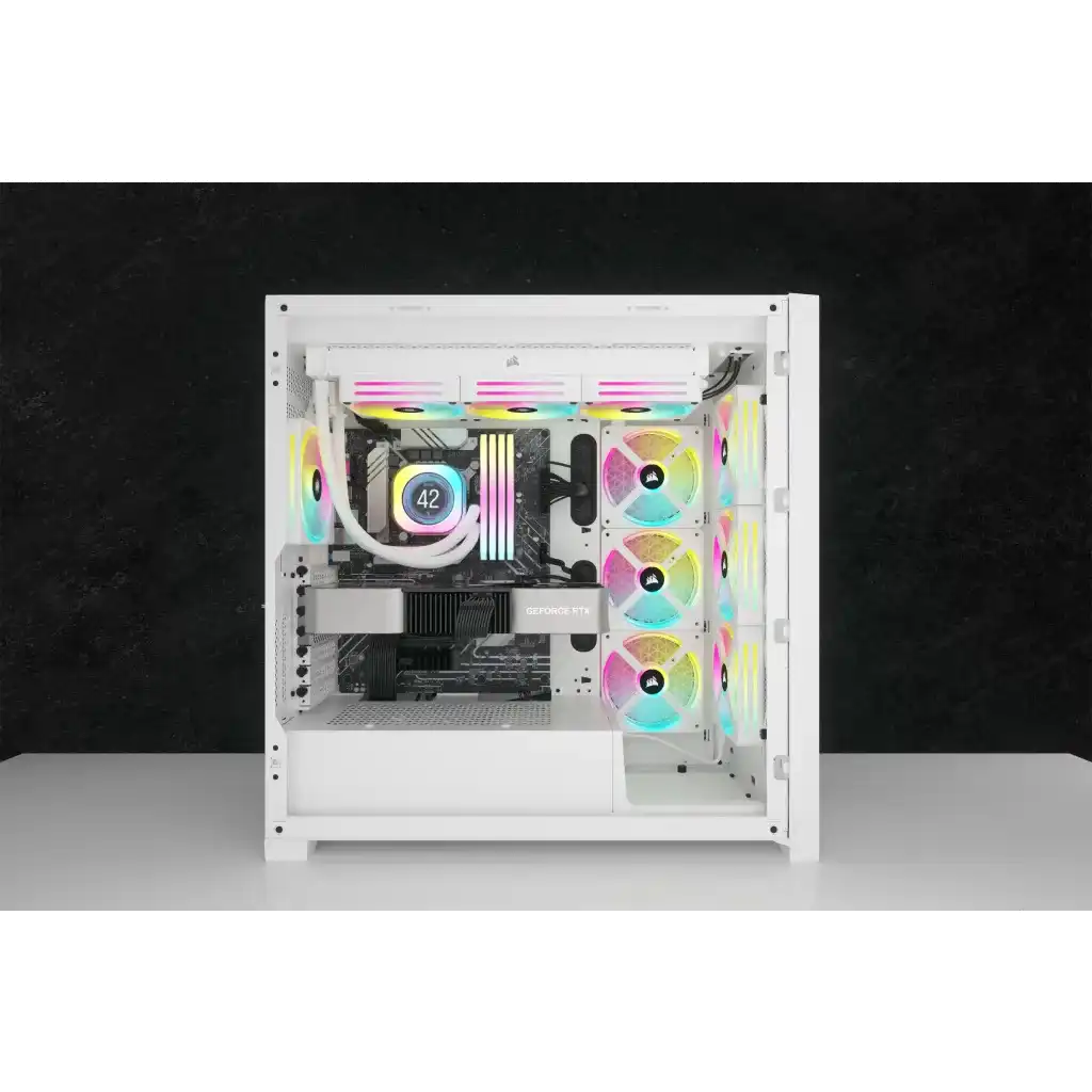 Verbesserter Luftstrom Mit einem Luftstrombereich von 16,44-63,1 cfm und einem Luftdruck von 0,17-3,8 mm gewährleistet der CORSAIR iCUE Link H150i LCD eine effiziente Wärmeableitung und optimale Kühlleistung.