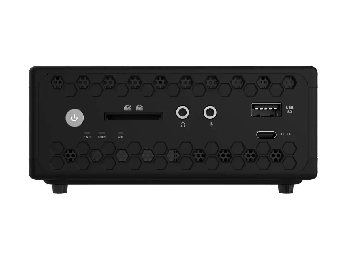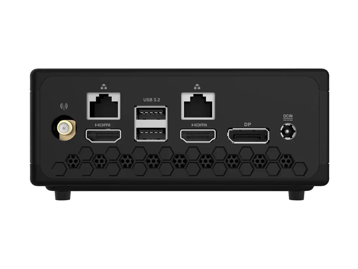 Vielseitige Konnektivität Ausgestattet mit zahlreichen Anschlussmöglichkeiten wie DisplayPort, HDMI, USB 3.2 und USB-C 3.2, gewährleistet dieser Mini-PC eine nahtlose Integration mit einer Vielzahl von Peripheriegeräten und Displays.