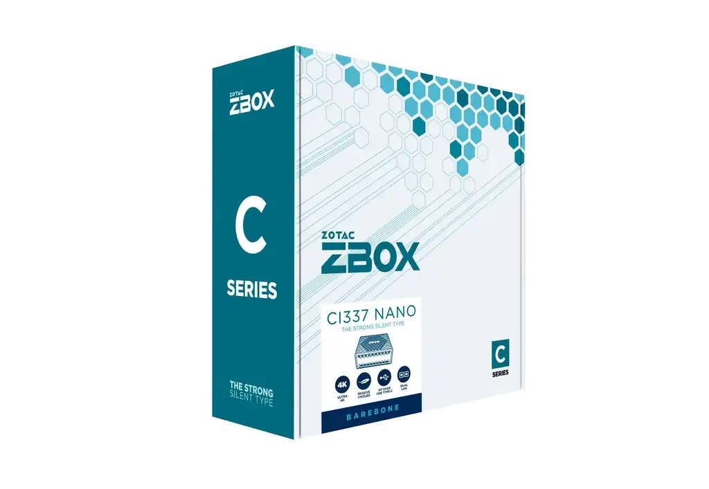 Kompaktes Design Die ZOTAC ZBOX C Serie CI337 nano definiert mit ihrem ultrakleinen Formfaktor die Arbeitsplatzeffizienz neu und ist damit die ideale Wahl für Umgebungen, in denen der Platz begrenzt ist.