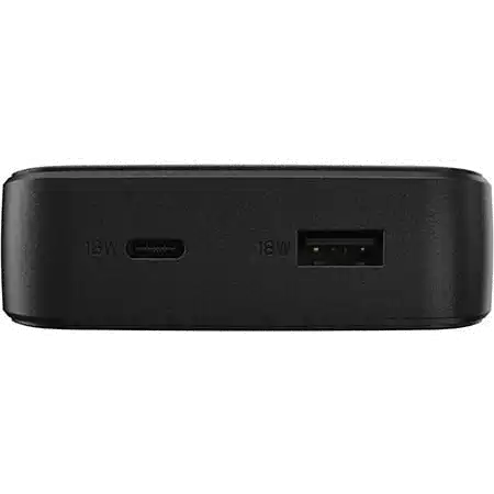 Induktive Power Bank - 15000 mAh - 18 Watt - 3 A - PD 2.0, PD 3.0, Apple Fast Charge, AFC, Huawei Fast Charge, PE 1.1+, PE 2.0+, SFCP - 2 Ausgabeanschlussstellen (24 pin USB-C, USB) - Schwarz