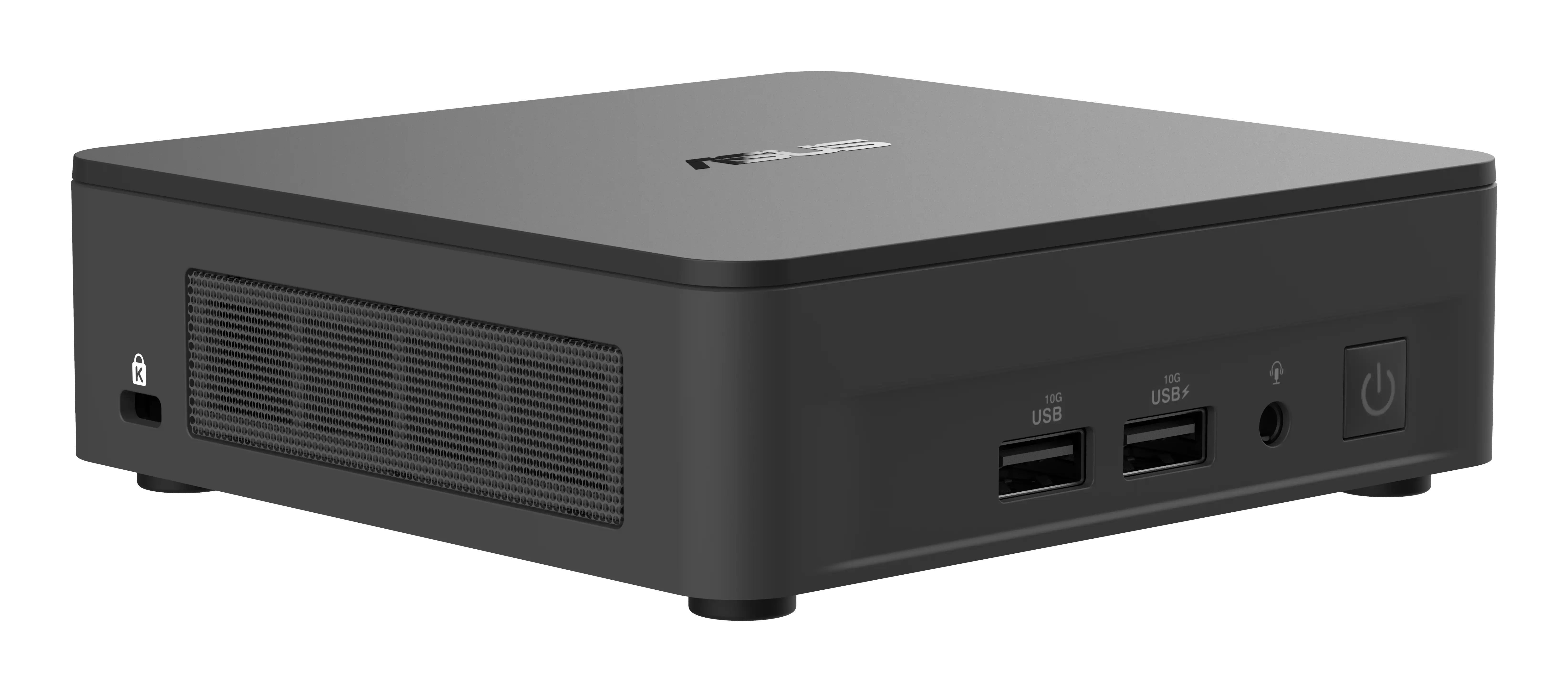 Kompaktes Design Das ASUS NUC 13 Pro Slim Kit zeichnet sich durch einen extrem kleinen Formfaktor aus, der es zur idealen Wahl für Räume macht, in denen jeder Quadratzentimeter zählt. Sein Mini-PC-Formfaktor ermöglicht eine einfache Platzierung in engen Räumen ohne Leistungseinbußen.