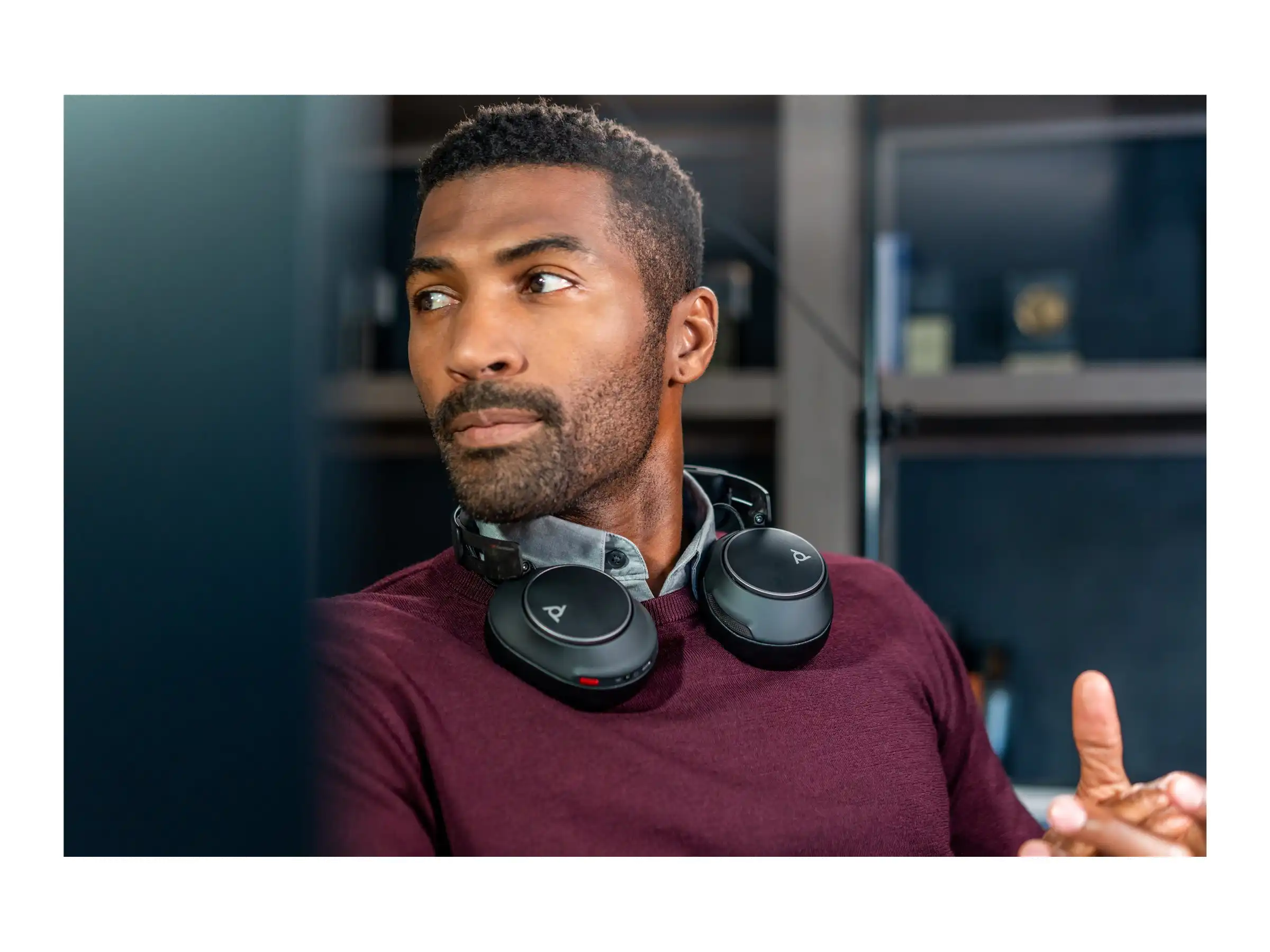 Arbeiten Sie ortsunabhängig und klingen Sie dabei optimal mit dem Bluetooth -Ohrbügel-Headset ohne Mikrofonarm. Tauchen Sie ein in satten Klang, genießen Sie absoluten Komfort mit weichen Ohrpolstern und einem verstellbaren Kopfbügel. Bleiben Sie dank adaptivem ANC außerdem voll konzentriert.