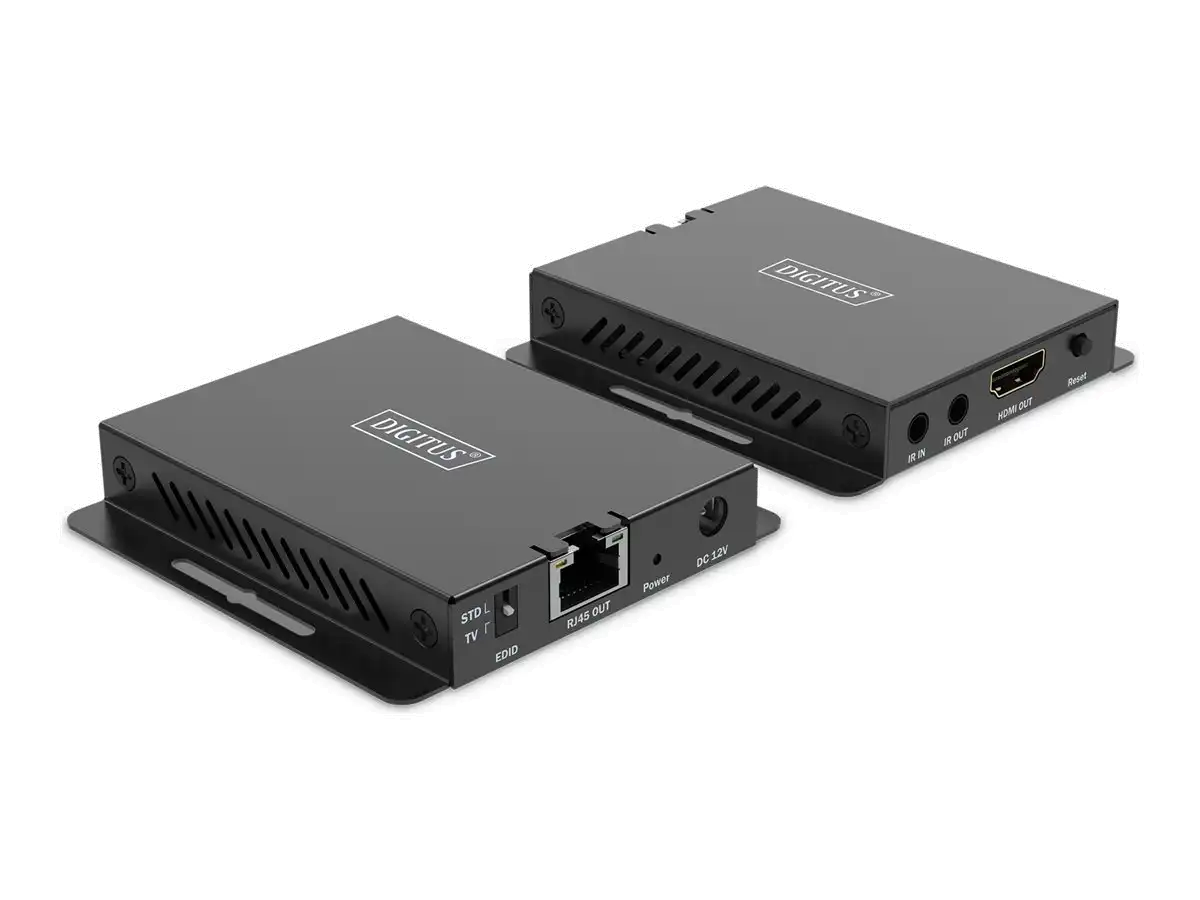 Das DIGITUS HDMI Extender Set ermöglicht eine HDMI-Signalübertragung über eine Distanz von bis zu 40 m (4K/120Hz, 4:4:4) mittels CAT 6 oder höher Kabel. Zum Leitungsspektrum gehört ebenfalls eine Bi-direktionale IR-Übertragung, welche eine flexible Steuerung der Signalquelle ermöglicht. Das ist ebenfalls zur Wandmontage geeignet und bietet damit flexible Installationsmöglichkeiten.