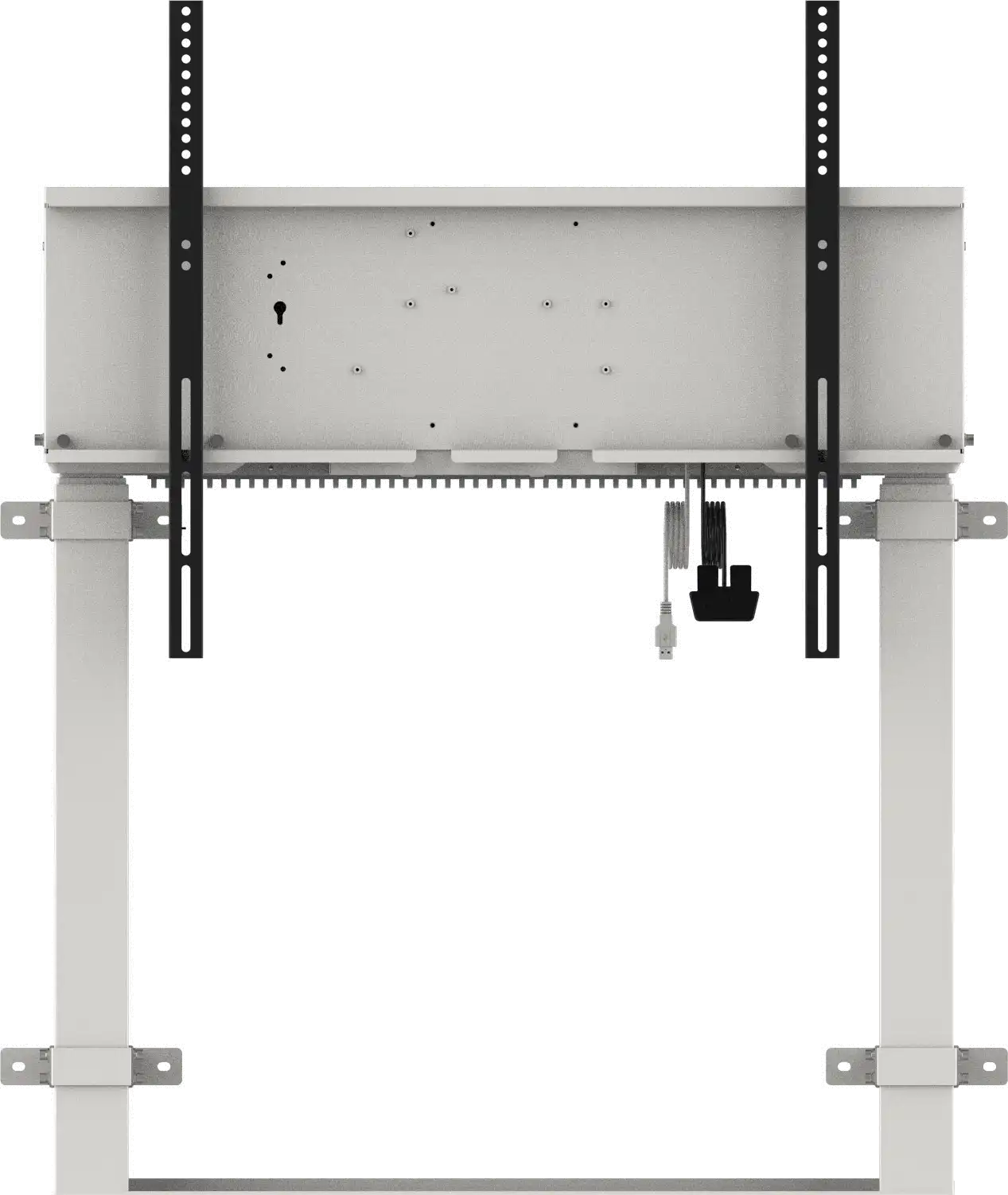 Breite Kompatibilität Der Lift eignet sich für eine Vielzahl von Flachbildschirmgrößen von 55" bis 105" und ist damit perfekt für verschiedene Display-Anforderungen geeignet. Er verfügt über eine Schnittstelle für Flachbildschirmhalterungen bis zu 800 x 600 mm.