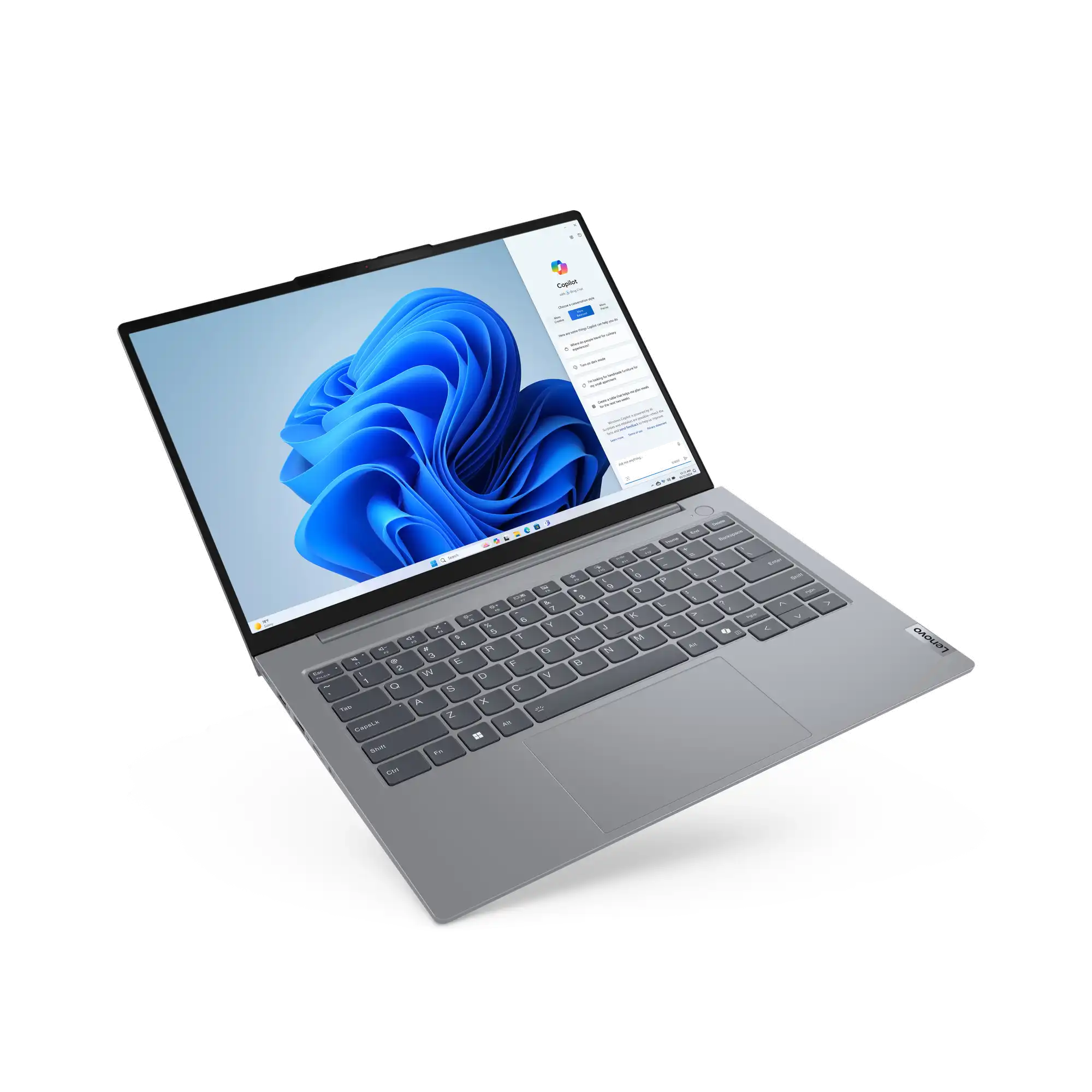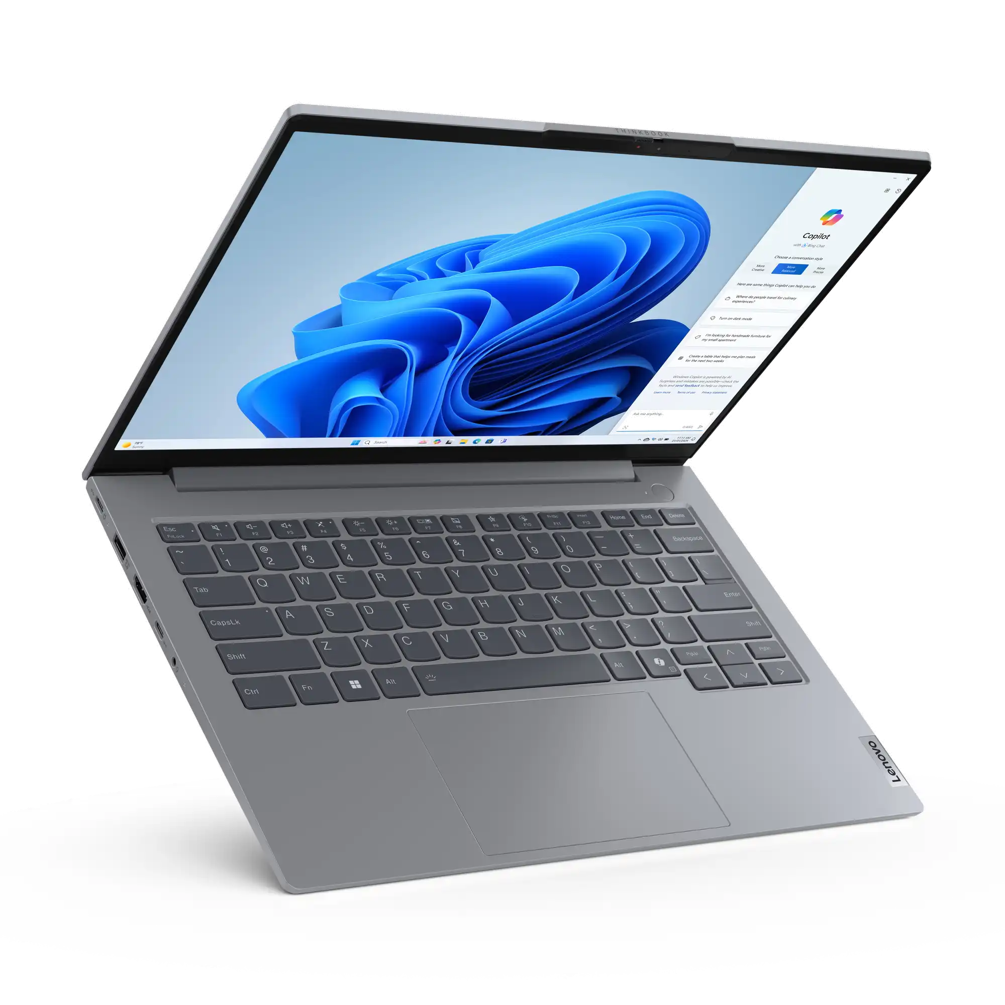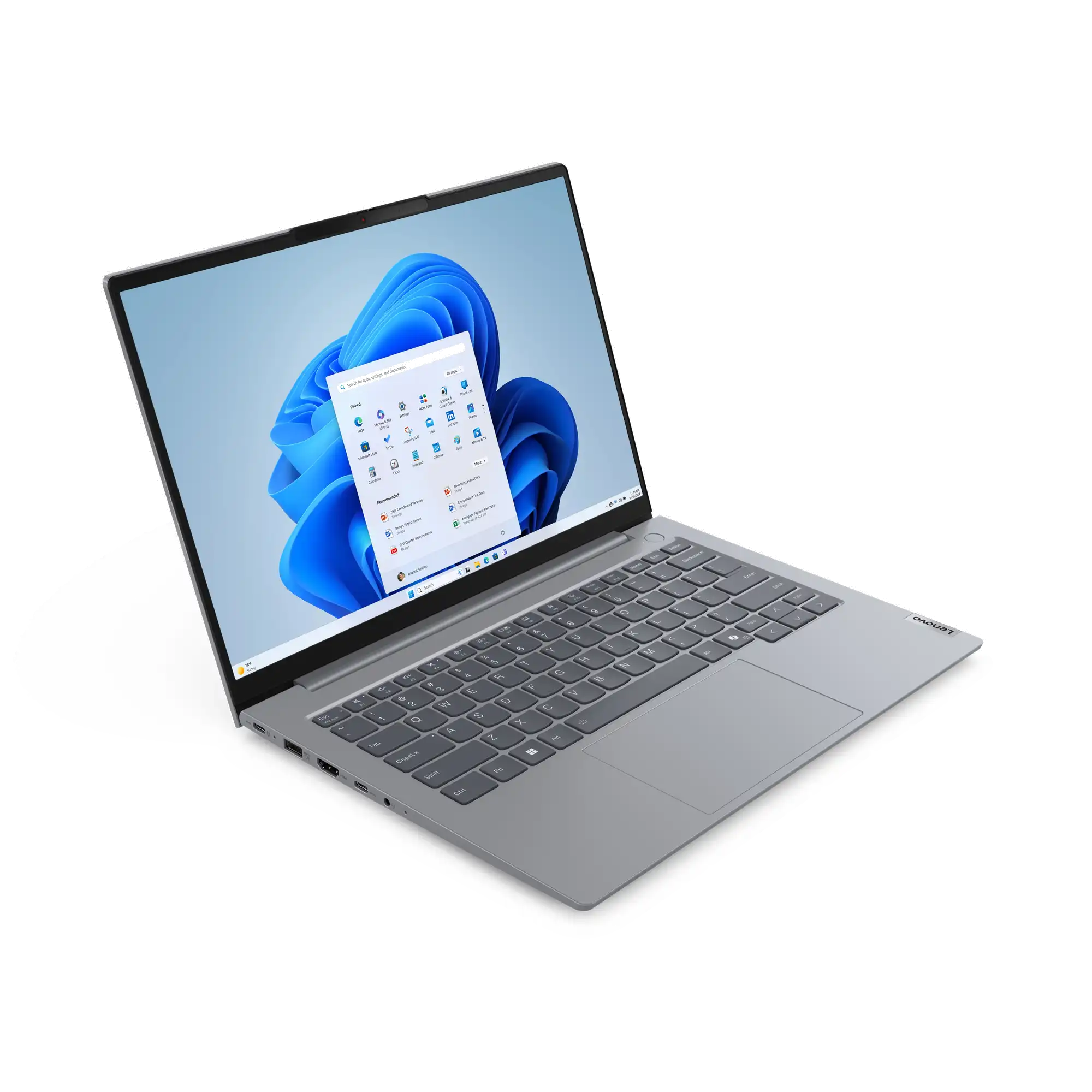 Schlank und modern Das ThinkBook 14 Gen 7 Notebook strahlt Eleganz und Professionalität aus und verfügt über ein seidiges Aluminiumgehäuse in der modernen Farbe„Artic Grey". Bei der Tastatur haben wir besonderen Wert auf Komfort und Genauigkeit gelegt: Sie hat geschwungene Tastenkappen, die sich perfekt an Ihre Finger anpassen und ein natürliches, ergonomisches Tipperlebnis bieten. LED-Statusleuchten an den Lautsprecher- und Mikrofontasten erleichtern die Steuerung Ihrer Audioeinstellungen und sorgen dafür, dass Sie gehört werden, wenn Sie sprechen.
