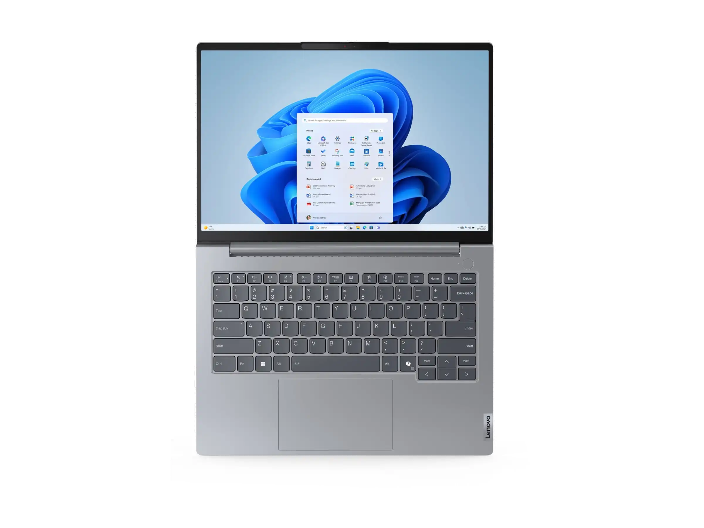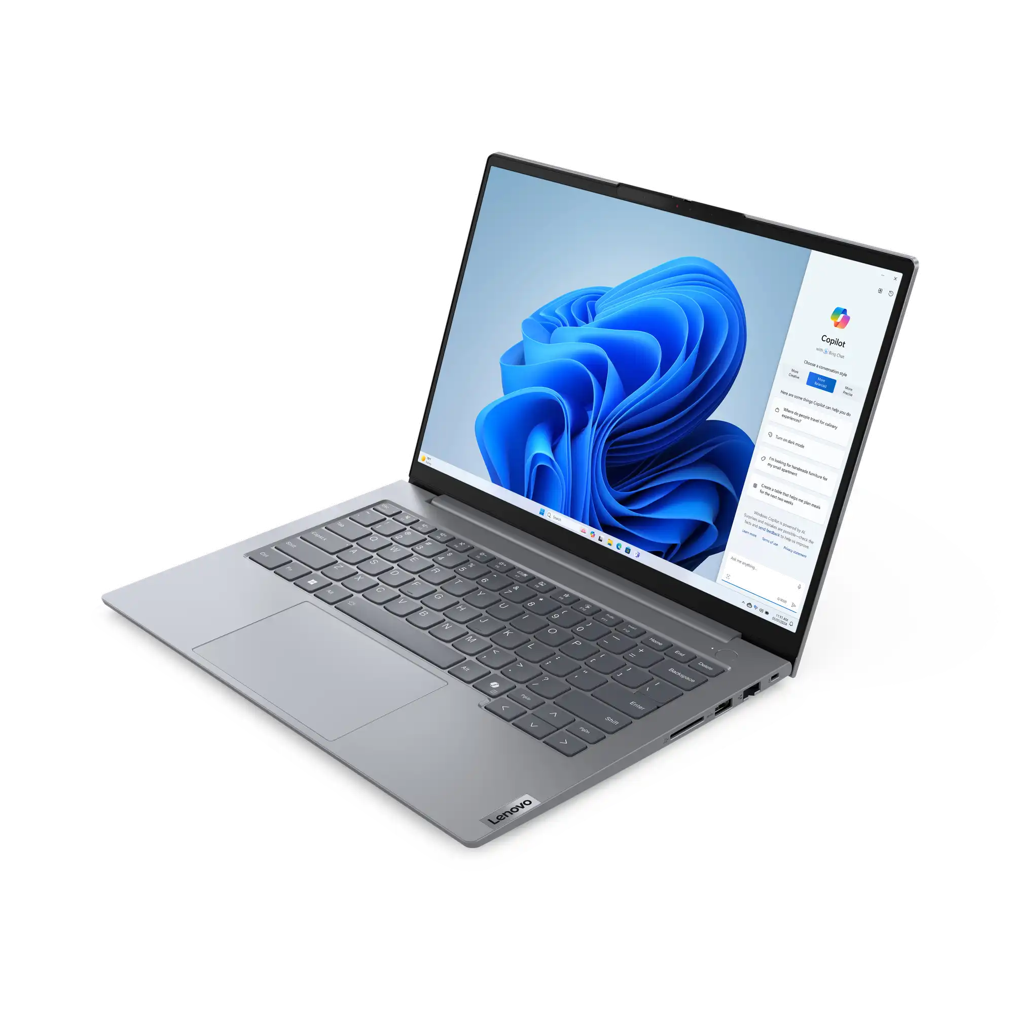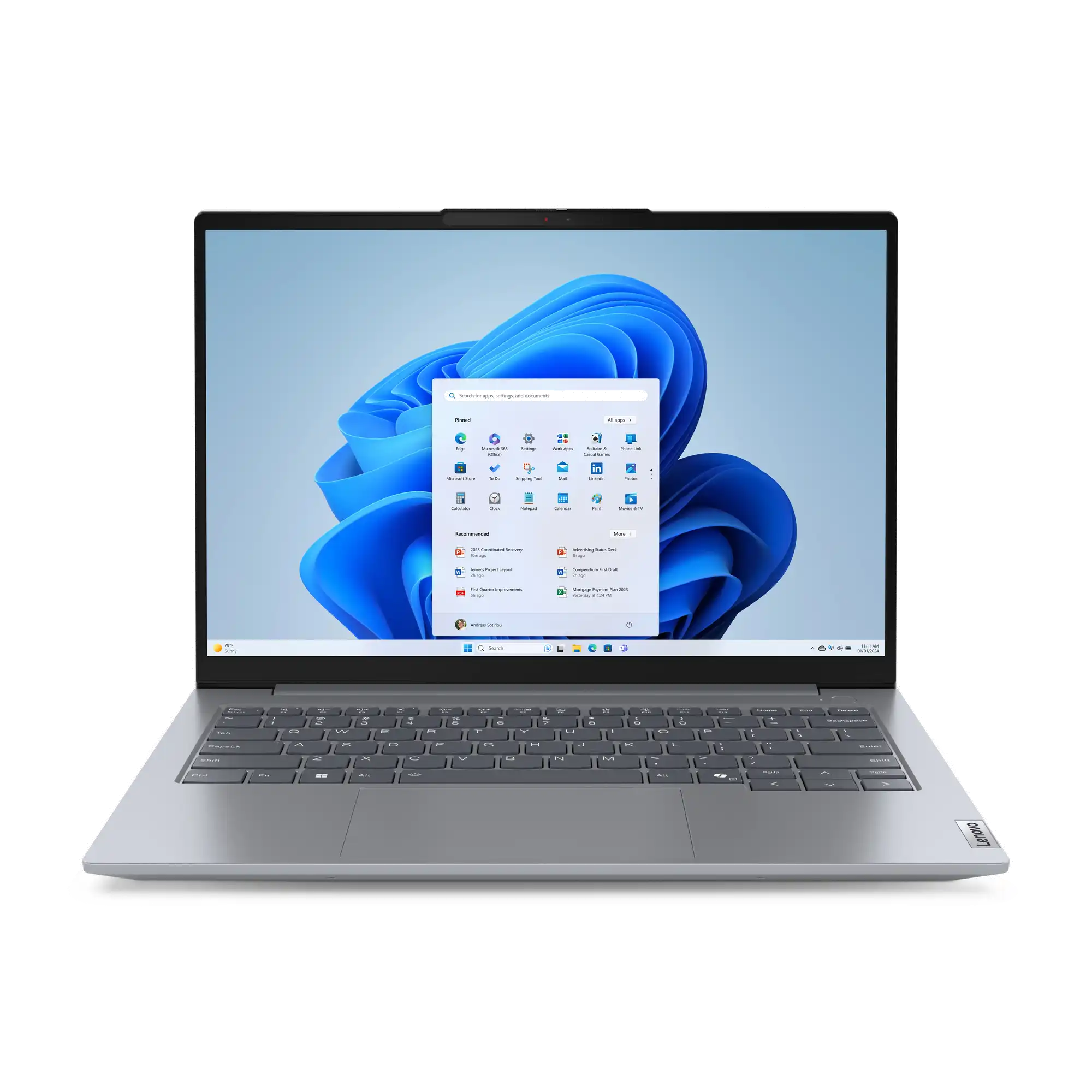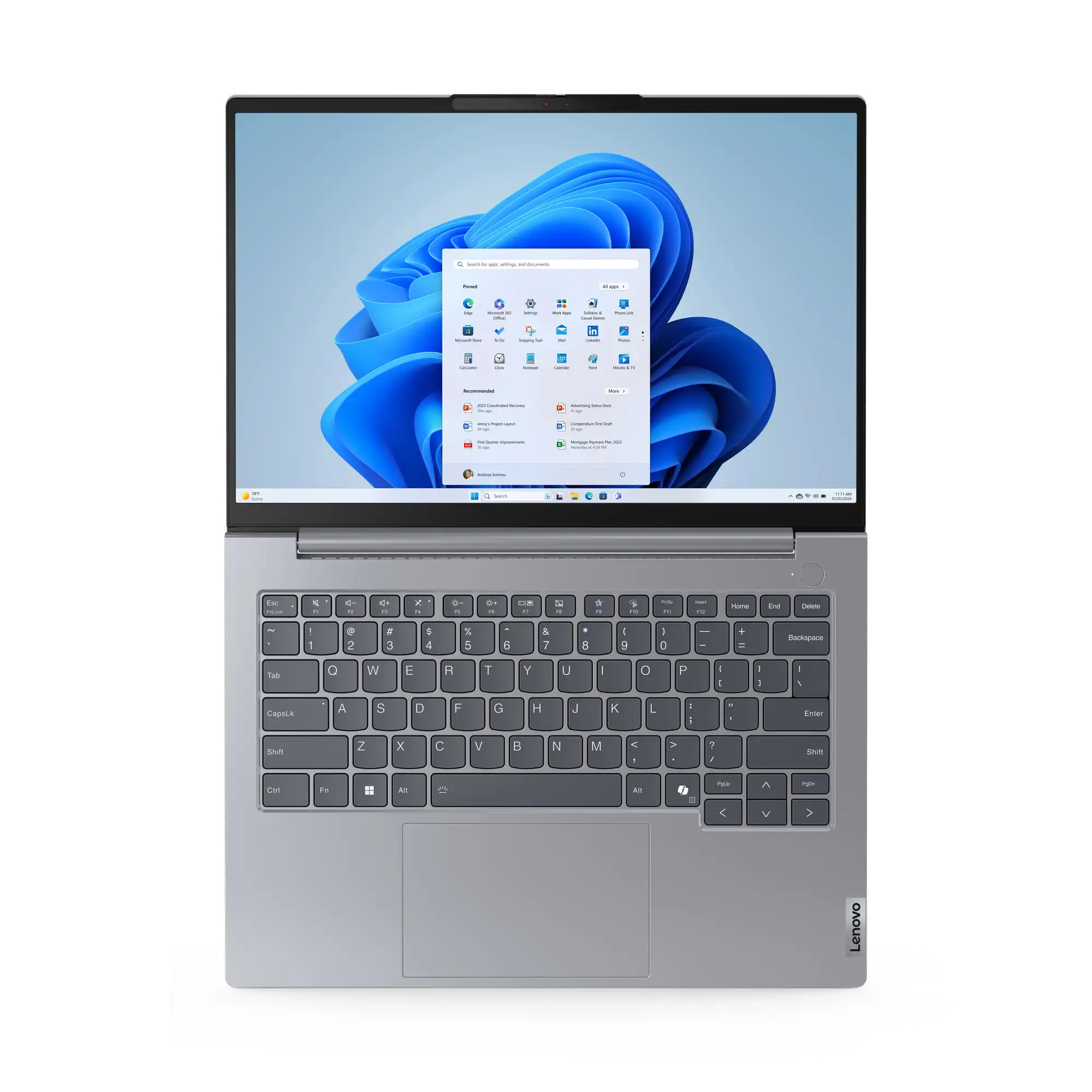 Schlank und modern Das ThinkBook 14 Gen 7 Notebook strahlt Eleganz und Professionalität aus und verfügt über ein seidiges Aluminiumgehäuse in der modernen Farbe„Artic Grey". Bei der Tastatur haben wir besonderen Wert auf Komfort und Genauigkeit gelegt: Sie hat geschwungene Tastenkappen, die sich perfekt an Ihre Finger anpassen und ein natürliches, ergonomisches Tipperlebnis bieten. LED-Statusleuchten an den Lautsprecher- und Mikrofontasten erleichtern die Steuerung Ihrer Audioeinstellungen und sorgen dafür, dass Sie gehört werden, wenn Sie sprechen.