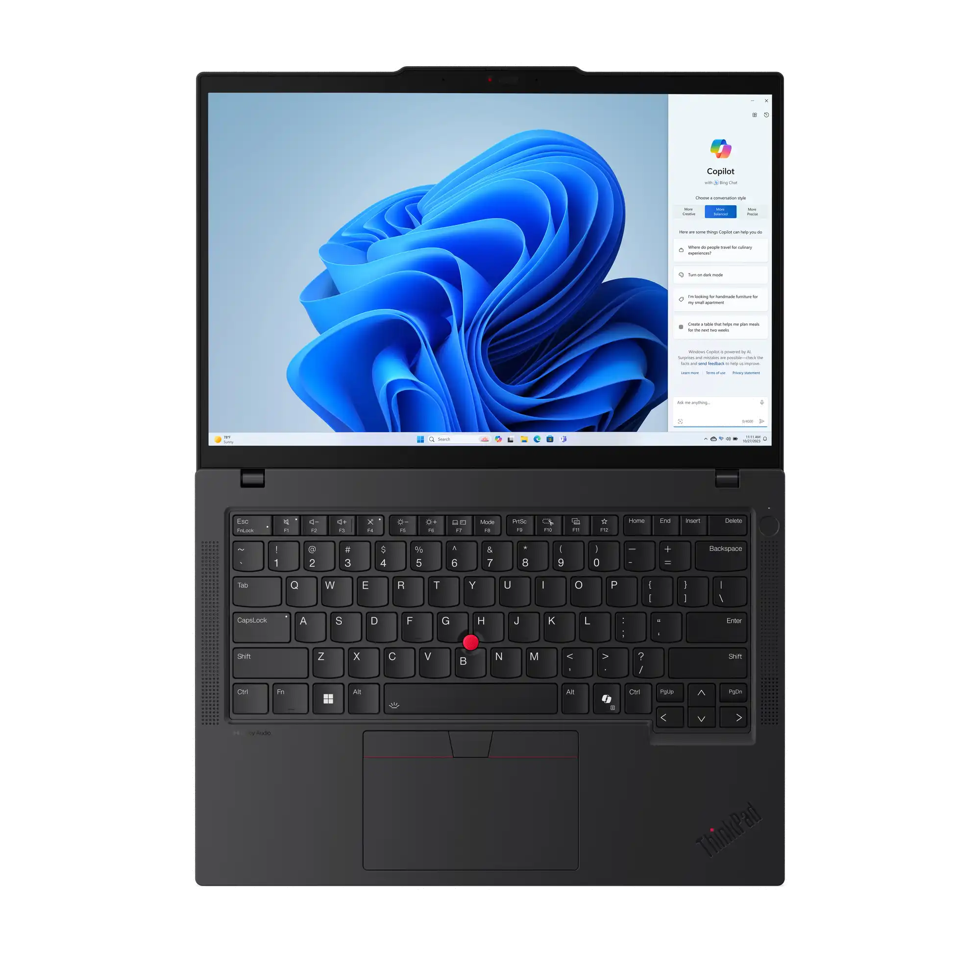 Sicherere Bedienung und bessere Steuerung Unsere neu gestaltete ThinkPad-Tastatur verfügt über taktile Markierungen für eine einfache Tastenerkennung und ein vergrößertes TrackPad (120 mm) für eine bessere Steuerung. Durch Doppeltippen auf den TrackPoint wird ein Schnellmenü aktiviert, in dem Sie diverse Einstellungen ändern können. Die Kommunikationsleiste auf dem Bildschirm ist mit einer 5-MP-Kamera und Mikrofonen mit Geräuschunterdrückung ausgestattet, die einen schärferen audiovisuellen Fokus ermöglichen.
