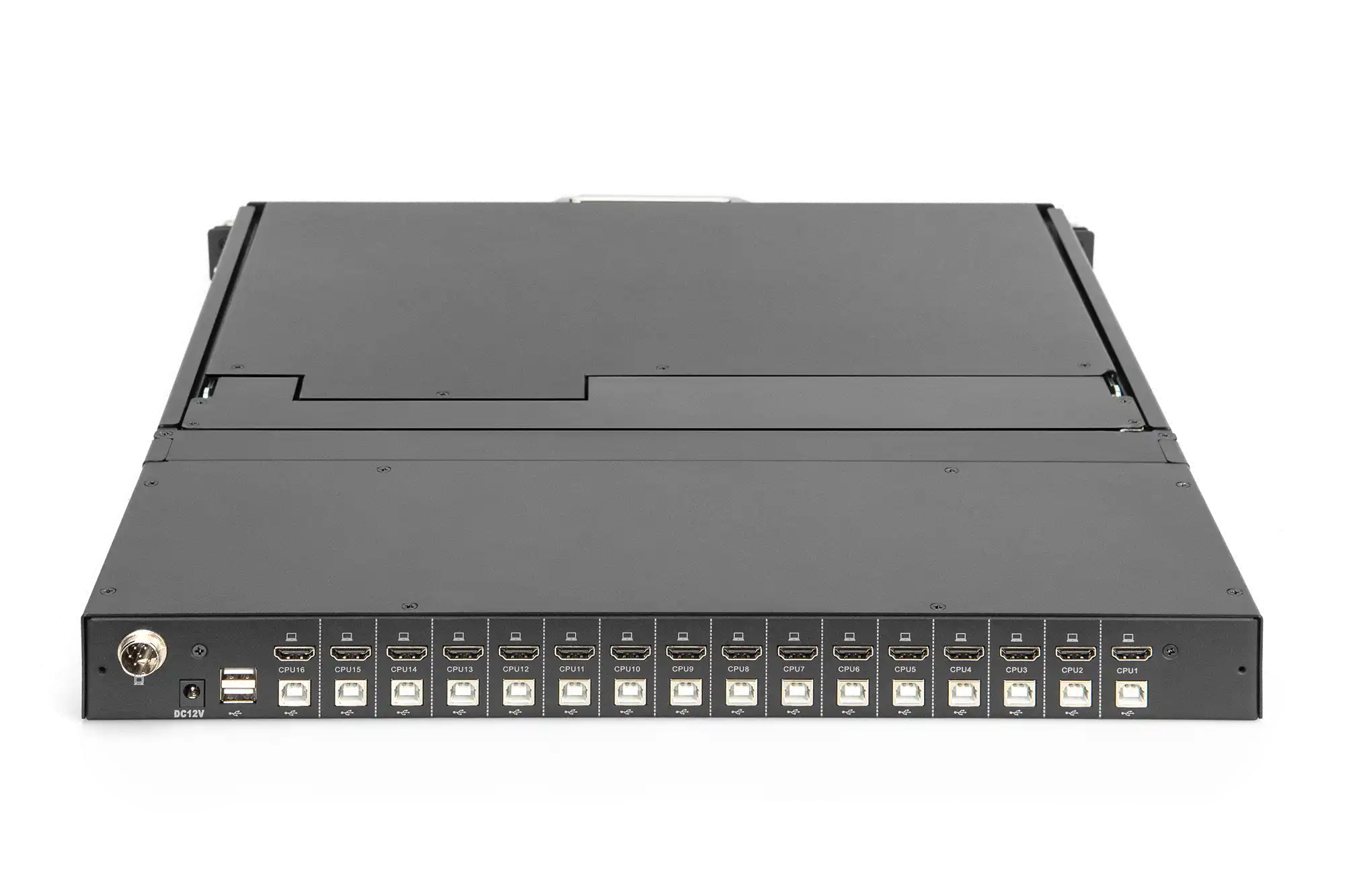 · Auflösung: 1920x1080 bei 60Hz · Konsole schafft bis zu 85 % mehr Platz · Kontrastrate: 1000:1 · Unterstützt: 16,7 M Farben · Inklusive 16-Port HDMI KVM-Switch · Maus Touch-Board mit zwei Funktionstasten · Die Konsole kann komplett aus dem Serverschrank herausgezogen werden und der TFT-Bildschirm kann um 120 Grad geneigt werden · Konsolen Sicherheitsverriegelung um Schäden zu verhindern · Schnittstelle: HDMI · Anzahl der Ports: 16 · Bildschirmgröße: 17 Zoll · Spezifikation der Leistungsaufnahme: Eingang: 100 - 240V AC, Ausgang: DC 12V / 4A · Gerät Leistungsaufnahme (max.): 30W · DC-Stecker Größe: 5.5 x 2.1 mm · DC-Stecker Elektrode: Innen ( + ) , Außen ( - )