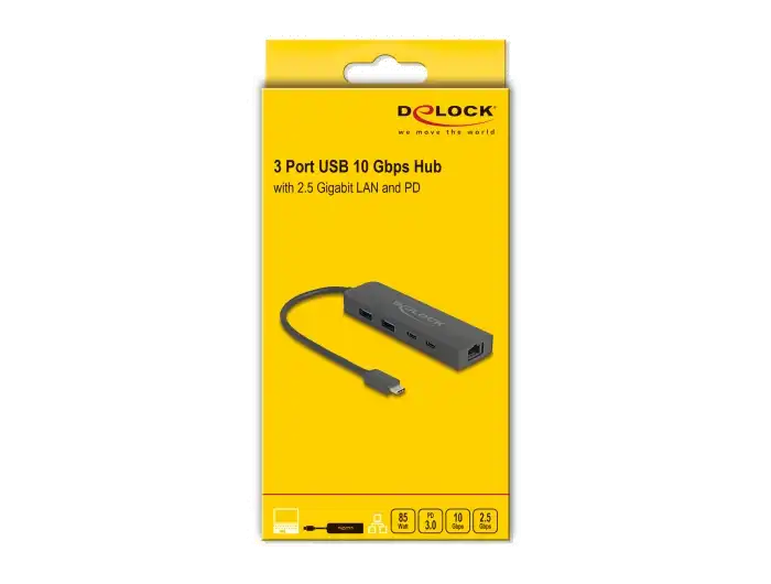Der USB Hub von Delock kann via USB Type-C™ Schnittstelle an einen PC oder ein Notebook angeschlossen werden. Er verfügt über zwei USB Typ-A Buchsen sowie über zwei USB Type-C™ Buchsen. Es können bis zu 3 USB Geräte mit dem Hub verbunden werden.