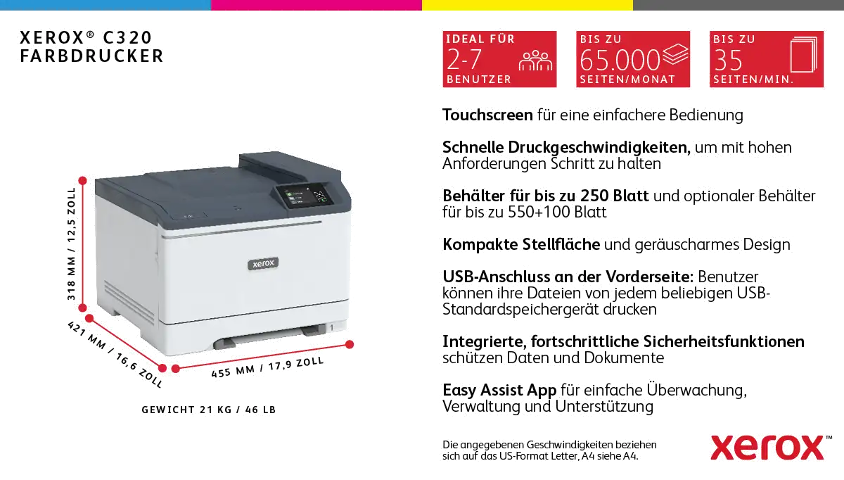 Maximale monatliche Auslastung: 65000 Seiten pro Monat